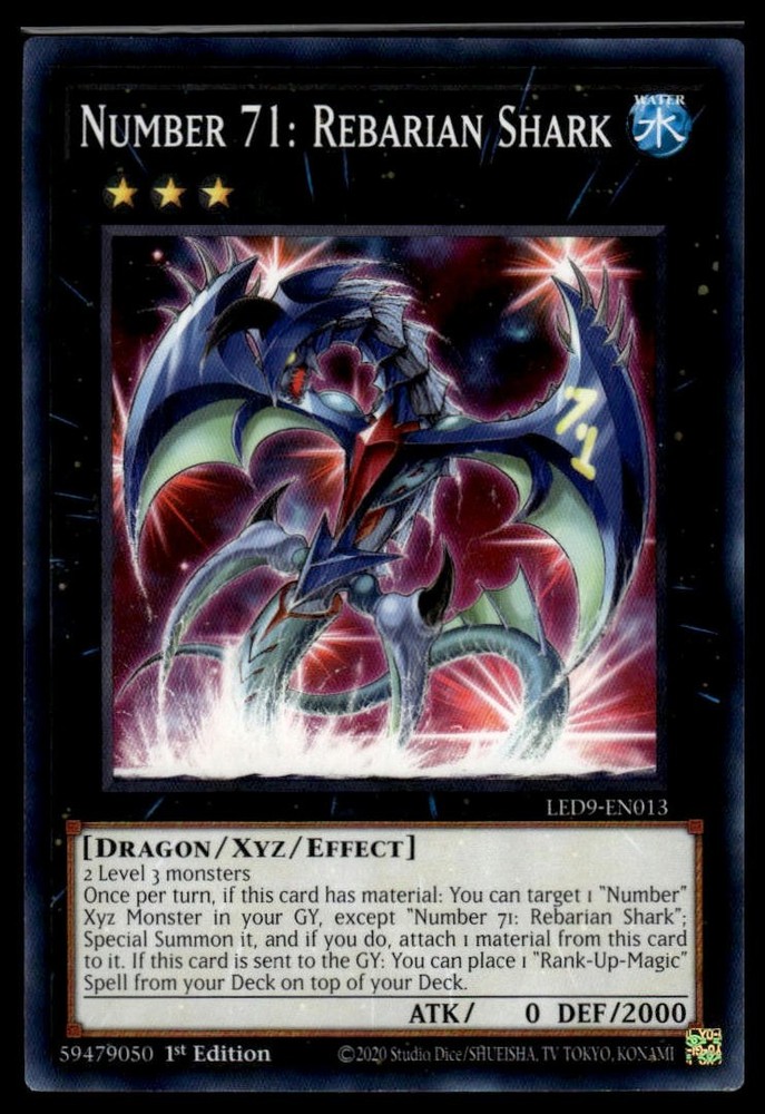 Number 71 Rebarian Shark - LED9-EN013 Duel From the Deep Legendary Card