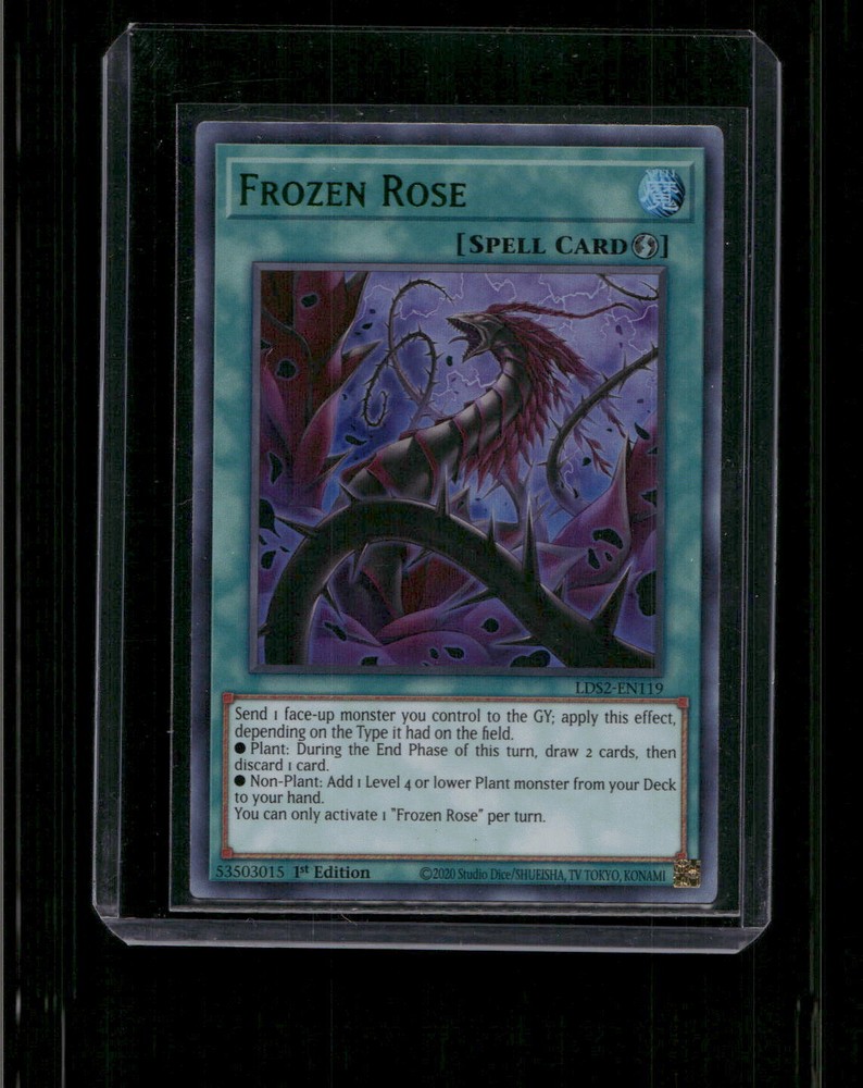 This is a nice example of a Legendary Duelists: Season 2 #LDS2-EN119 Frozen Rose (Green) Other important information about this card: Ultra Rare In Frozen Rose (Green) played for the . Please check out our other listings for more great cards.