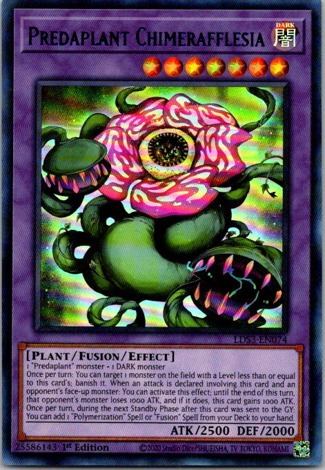 This is a nice example of a Legendary Duelists: Season 3 #LDS3-EN074 Predaplant Chimerafflesia (Blue) Other important information about this card: Ultra Rare In 2022 Predaplant Chimerafflesia (Blue) played for the . Please check out our other listings for more great cards.