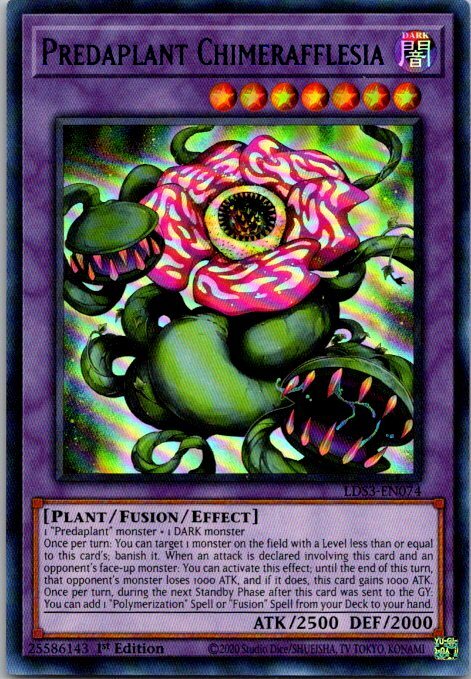 This is a nice example of a Legendary Duelists: Season 3 #LDS3-EN074 Predaplant Chimerafflesia Other important information about this card: Ultra Rare In 2022 Predaplant Chimerafflesia played for the . Please check out our other listings for more great cards.