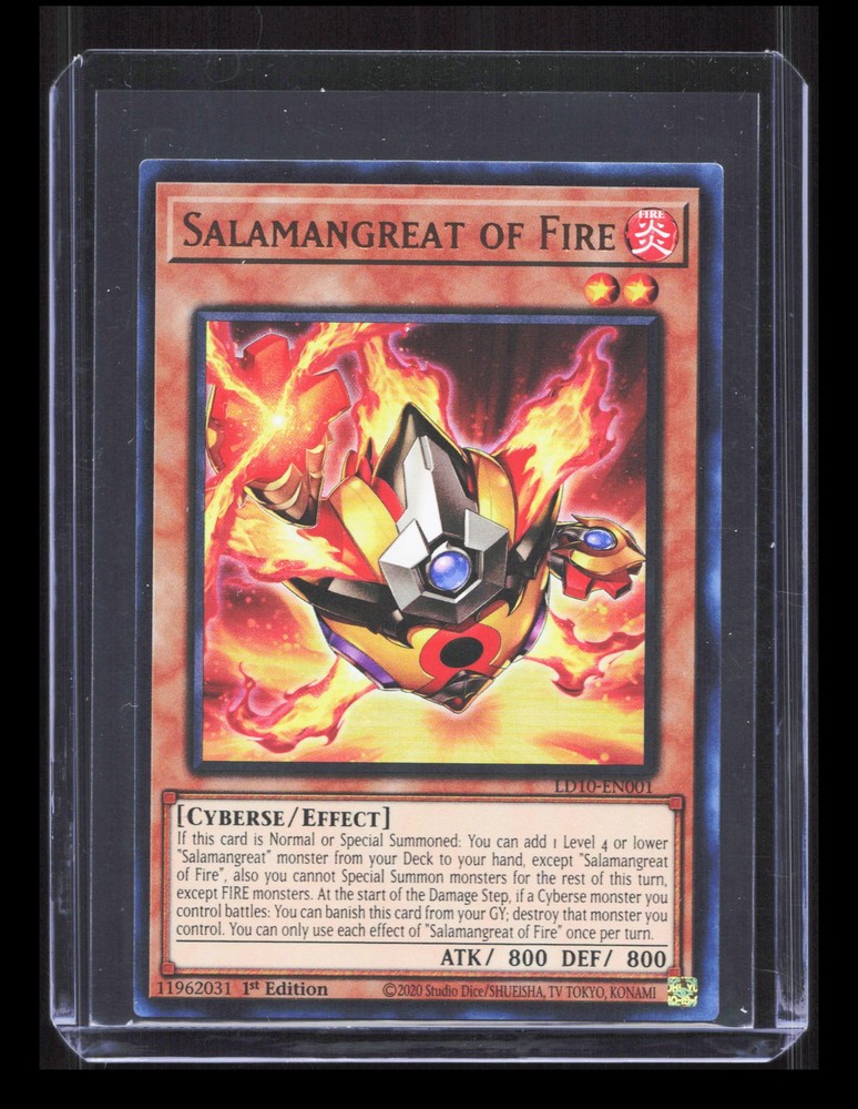 This is a nice example of a Legendary Duelists: Soulburning Volcano #LD10-EN001 Salamangreat of Fire . I am not a professional grader, raw card condition is subjective, please refer to the high definition scans or raw cards to determine the condition of the card All cards are in the EX-NM range unless otherwise stated Chrome cards (Topps Chrome/Prizm/Optic/Mosaic) might have minor light surface scratches which is typical with these types of cards. Any major deep scratches will be stated if any are present Coupons and discounts don't apply for accepted offers. Please check out our other listings for more great cards, and be sure to save me as a seller as I plan on listing 10's of thousands of cards over the coming weeks/months.