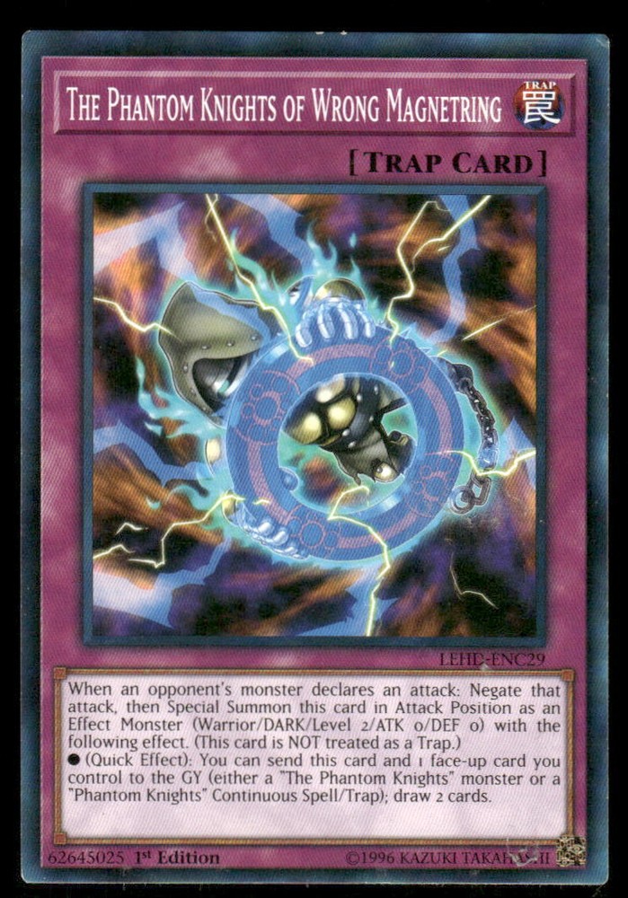 Yugioh If you see any lines on the cards it is from the Scanner Glass it is not on the Cards... If you have any questions please ask we will be happy to send more pictures if requested . This is a nice example of a Legendary Hero Decks #LEHD-ENC29 The Phantom Knights of Wrong Magnetring .Other important information about this card: In 2018 The Phantom Knights of Wrong Magnetring played for the .Please check out our other listings for more great cards.