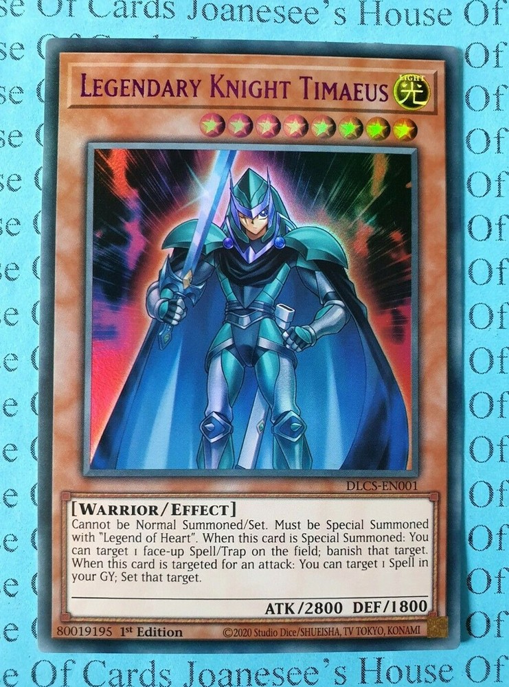 This is the Ultra Rare Holo Light Warrior (Purple Title) Legendary Knight Timaeus 8 Stars ATK/2800 DEF/1800 Card text: Cannot be Normal Summoned/Set. Must be Special Summoned with "Legend of Heart". When this card is Special Summoned: You can target 1 face-up Spell/Trap on the field; banish that target. When this card is targeted for an attack: You can target 1 Spell in your GY; Set that target. DLCS-EN001 1st Edition English Mint Condition Totally Original Konami (or your money back!) I will deliver in safe packaging to keep it in perfect condition. Ideal for players and collectors alike. Check out my other items! I will combine postage costs for multiple purchases. Sign up for my email newsletters by adding my eBay Shop to your favourites