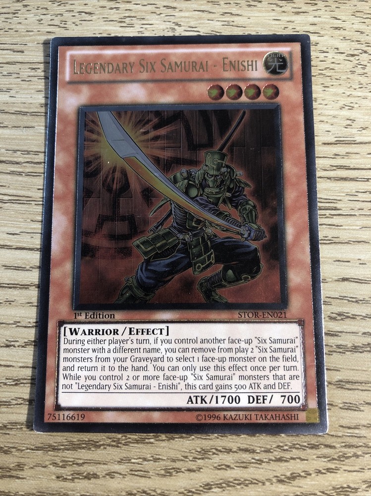 Legendary Six Samurai - Enishi STOR-EN021 Ultimate Rare 1st Edition Yugioh Card Condition: Near Mint - Please see photo of actual card.