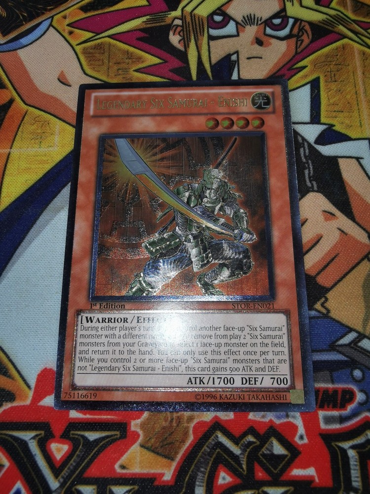Home New Arrivals Feedback Contact Legendary Six Samurai - Enishi stor-en021 Item Description Good day Sir/Madam! The card(s) you are viewing now will be in NM+ condition Message me on Instagram (@TheCollector1462) for better deals on all cards/slabs ^^ CHECK OUT MY GRADING SYSTEM BELOW ^_^ All conditions stated in my listings are my opinion of the card, which may differ from somebody else. When I say 'Mint condition', I believe it is grade worthy, please message me first if that is what you are after and I will double check any card for you so nobody is disappointed :) MINT (M) = No damages....MINTY FRESH! (BUT MESSAGE ME if you need me to check if it is grade worthy) NEAR MINT (NM) = Close to mint with only very slight wear/imperfection(s) VERY LIGHT PLAY (VLP) = Very slight wear but not quite NM. LIGHT PLAY (LP) = Visible wear on the card but nothing major. MODERATE PLAY (MP) = Obvious wear like notable edge/corner silvering/whitening, maybe the odd light indentation. HEAVILY PLAYED (HP) = Still playable but in pretty bad shape overall & likely to have creases/notable indentations. + = Higher end of that condition grade e.g. 'NM+' is almost Mint. Always message me if unsure of condition :P The first picture (of both front and back) will be the card(s) you will receive!!! Any extra pictures are to show you the other cards for sale (in order). Please have a look at my other swag as upload old and new cards most days! :) Message me if i can help with anything at all! ***I WILL BUY YOUR YU-GI-OH CARDS !!!*** See Other Items Shipping Always very well packaged!! I post same day if ordered by 3pm or next working day if after 3pm :) Message me if you have any specific requirements for postage as I can always work something out for you! Payment I accept many methods of payment including PayPal, Bank Transfer etc... :) Thank you!! Returns I accept returns for items not as described (any error on my part). I will also accept returns on items where you have simply changed your mind....however I do request that you pay the postage back to me. Thanks for looking Thank You for your purchase Copyright All Rights Reserved - Template Created by ZTproject