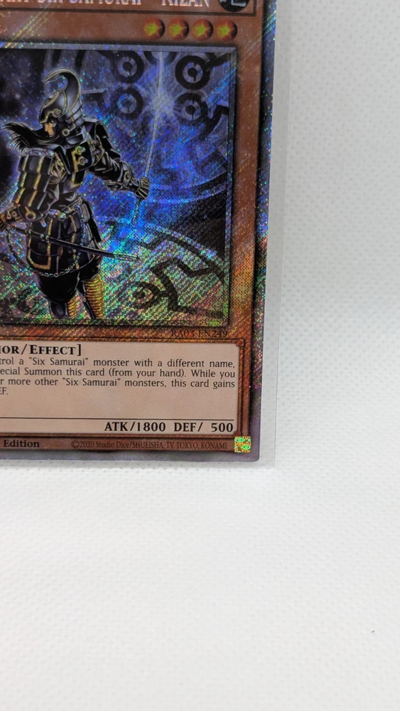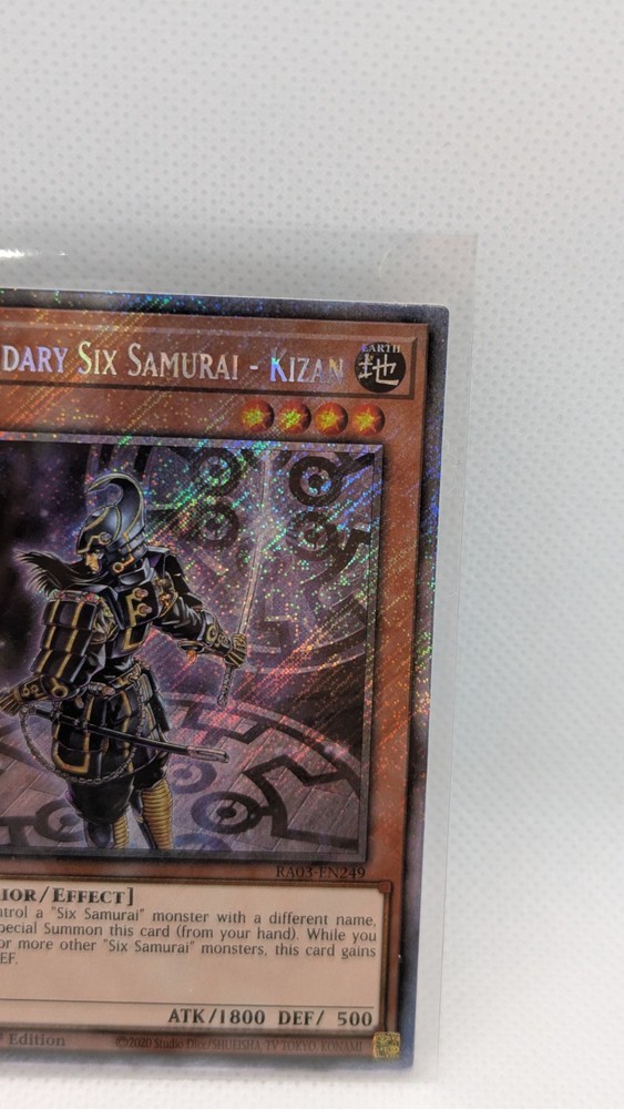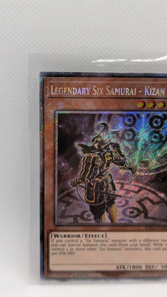 Same Day Shipping, Always Pack Fresh, Always Near Mint Elevate your Yu-Gi-Oh! TCG collection with the Legendary Six Samurai - Kizan card, a Platinum Secret Rare gem from the Quarter Century Bonanza set. This card, numbered RA03-EN249, features the formidable warrior, Kizan, known for his strategic prowess and earthy attributes with 500 defense and 1800 attack power. This English language card is a must-have for both players and collectors. As a 1st Edition effect card, it stands out with its unique abilities, and with Konami's stamp of quality, you're assured of a top-tier addition to your deck or display. The earth attribute brings a tactical edge to your gameplay, making Kizan a versatile inclusion in your arsenal.