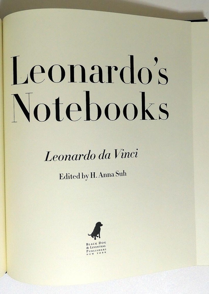Leonardo’s Notebooks, Leather, Black Dog and Leventhal/Easton Press, 2005. It has a few marks on the gilt edges but otherwise is in excellent condition, no writing or book plates. Book measures about 10 1/2" x 12 1/4".