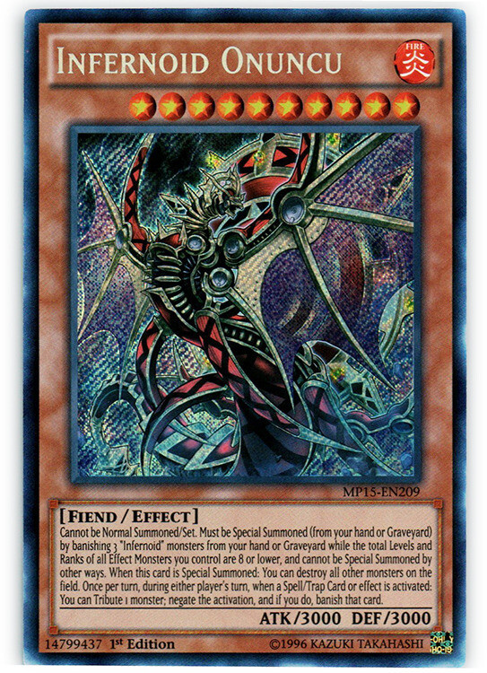 Hello, and Welcome to The Deck Box! Today you are bidding on One Infernoid Onuncu - MP15-EN209 - Secret Rare - 1st Edition from Mega Pack 2015 (MP15). This card language is English and condition of this card is: Condition: Lightly Played | Language: English. (See Grading Scale below). Please note: the image is a stock image, the card will likely look different than the one in the image, but it will be the same set, finish, and language card. We accept Pay-Pal and eBay Managed Payments Only. Please note, we will happily send additional pictures of cards valued over 50.00 USD, but cannot feasibly send pics for cards under that value. We thank you for your understanding regarding this matter. We gladly ship internationally! Shipping is .99 for Plain White Envelope or 3.99 for tracked Bubble Mailer in the U.S. International shipping is 14.99 for standard First Class mail. Also Note : We are no longer able to send items to Italy or Brazil , due to numerous problems with customs with those countries. We apologize for any inconvenience this causes. Payment is expected immediately upon winning. Items will ship the next business day after payment is received. We ship all cards in sleeves, which are then placed in top loaders and shipped in either PWE or bubble mailer, depending on your shipping selection. We offer FREE Combined Shipping, so Shipping for any additional eligible items purchased at the same time is FREE!! North Carolina Residents, please note that Sales Tax of 6.75% will be added to your order during Checkout. Please feel free to ask questions or request more information. Grading Scale: Near Mint Cards in Near Mint (NM) condition show minimal to no wear from shuffling, play or handling and can have a nearly unmarked surface, crisp corners and unblemished edges outside of a few minimal flaws. A Near Mint card may have a tiny edge nick or a tiny scratch or two, but overall look nearly unplayed with no major defects or flaws. The acceptable range of cards within the Near Mint condition include both cards with no imperfections and cards with a few minor imperfections. NEAR MINT FOIL On foil cards, wear and blemishes are more easily noticed. As a result, grading Near Mint Foils (NMFs) is fairly simple: They canʼt have any scratches, clouding, print defects or visible damage or marks. Near Mint Foils are nearly pristine cards because itʼs the most scrutinized card condition. Lightly Played Cards in Lightly Played (LP) condition may have minor border or corner wear or even just slight scuffs or scratches. There are no major defects such as liquid damage, bends or issues with the structural integrity of the card. Noticeable imperfections are okay, but none should be too severe or at too high a volume. The acceptable range of cards within the Lightly Played condition include both cards with a handful of minor imperfections and those with a few more noticeable imperfections. LIGHTLY PLAYED FOIL Lightly Played Foils (LPFs) show minimal wear and very few surface flaws. Any flaws such as scratches are very slight, and no major imperfections or flaws should exist. Scratches in the art box tend to be more noticeable and factor more heavily than other flaws. Foils in Lightly Played condition may also have slight fading or signs of wear or slight warping. Moderately Played Cards in Moderately Played (MP) condition can have border wear, corner wear, scratching or scuffing, creases or whitening or any combination of mild examples of these marks. A Moderately Played card may have some form of a more major marking, such as creasing that doesnʼt affect card integrity, but not in combination with other issues such as scratches, scuffs or border/edge wear and not impacting a large area of the card. MODERATELY PLAYED FOIL Warping, clouding, scratching and a little flaking are all fine on Moderately Played Foils (MPFs). They are also allowed to have minor border wear. As long as there are no major defects, these minor flaws are okay on MPFs. Heavily Played Cards in Heavily Played (HP) condition show a severe amount of wear. Cards with less than 30% of the surface being liquid damaged are typically accepted but may be considered Damaged if especially detrimental. HP cards can have one small instance of missing ink (such as if something is stuck to a card, then removed and pulls away part of the card), along with major creasing, whitening and border wear if the card can still be sleeve playable. Damaged Cards in Damaged condition can exhibit a tear, bend or crease that may make the card illegal for tournament play, even in a sleeve. If more than 30% of the card is damaged by liquid, it's considered Damaged. Cards in Damaged condition may have extreme border wear, extreme corner wear, heavy scratching or scuffing, folds, creases or tears or other damages that impacts the structural integrity of the card. (Note: No one likes to receive a card that is covered in a foreign substance, such as food, liquid or other material. Cards like these are not accepted through TCGplayer.) Heavily Played and Damaged Foils Heavily Played Foils (HPFs) and Damaged Foils follow the same rules as their non-foil counterparts. Happy Bidding!!