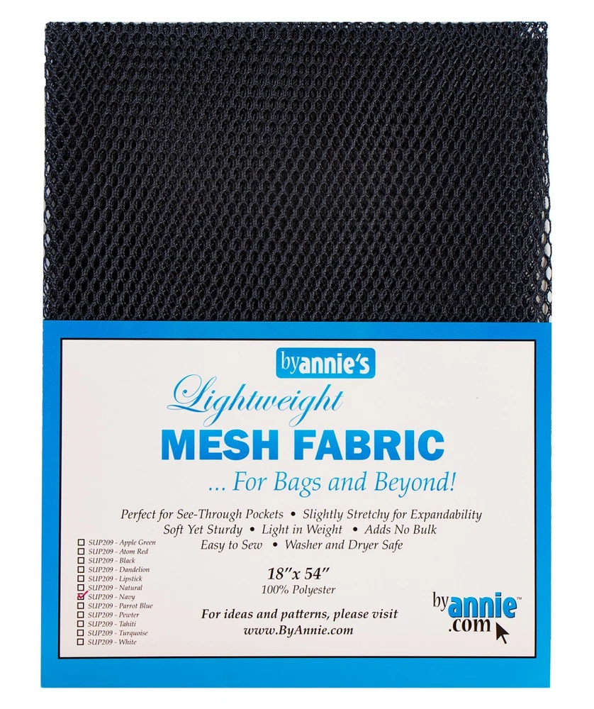 Lightweight Mesh Fabric ~ 18" x 54" Piece in Package ~ 14 Assorted Colors If purchasing more than one package, Please request total and wait for my invoice before payment so I can lower the postage correctly! Lightweight and a bit stretchy, this mesh is fabulous! Perfect for pockets on bags or anywhere you want to be able to see what you are storing, the mesh also works great in various garment applications and utility needs. To help you sew, the mesh is specially coated to be less slippery and easy to work with, while still being soft and pliable. Finish the edges with a simple binding using your favorite fabric or try extra-easy-to-use fold-over elastic to provide extra stretch. Each package contains 1/2 yard (18 inches x 54 inches) and is enough for numerous small projects. 100% polyester. Washer and dryer safe. For ideas and patterns, you can visit the ByAnnie website. 2024 Shipping Rates (shipping from Washington state) ~ If you are purchasing more than 1 different item, PLEASE "REQUEST TOTAL FROM SELLER" so I can send a corrected invoice before you pay. Ebay automatic calculations for more than 1 item are usually too high. The Ebay system doesn't allow refunds processed for less than $1. Also, you must be using a desktop computer to see the option to request this. I do issue refunds for overcharged postage more than $1. Thank you for your understanding. Domestic Shipping for Quilt Cotton (all fabric shipped by weight) ½ yd $3.86 to $4.36 - 1 st Class (up to 4 oz) 1 yd $4.31 to $4.68 - 1 st Class (up to 8 oz) 1 ½ yd $5.00 to $5.62 - 1 st Class (up to 12 oz) 2 yd to 2.5 yds $6.33 to $7.15 - 1 st Class (13 to 16 oz) 3 yd up to 8 yd $8.95 for Padded Flat Rate Priority Envelope Over 8 yds up to 20 yds $15.19 Medium Priority Flat Rate Box I love to combine shipping for the best rate for my loyal customers and make every effort to ship same day or the first business day following receipt of payment. Please leave feedback when you have received your item so I can be assured of completed transaction. I value positive feedback so if you have any issues with service or merchandise, please contact me first to resolve the issue before leaving feedback so I can give you the best customer service! I package all fabrics in plastic Ziploc bags for protection and safe delivery. Please open your envelope or package carefully so as not to damage your merchandise. All merchandise is stored in my smoke-free, pet-free home studio. Please ask any questions before purchase if I have not covered transaction details in these notes! Thank you for supporting my small business!