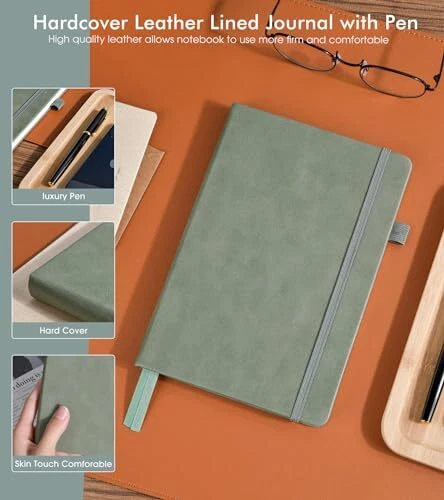 Return Policy Fast Delivery Trusted seller Lined Journal Notebook for Men Women, 200 Numbered Pages Leather Hardcover Journal with Pen, A5 Journaling Notebooks, Thick Paper College Ruled Journals for Writing Work Business 5.75'' X 8.38'' Green Product Description 【Hardcover Leather Journal with Pen】Adopt premium hard cover leather make the lined notebooks more sturdy and touched comfortably, and will help to protect the pages inside and provide a comfortable writing surface. Which have a green sumptuous vintage look, classic design style makes the notebook never goes out of fashion. What's more, our journal notebook is designed with your convenience in mind. It comes with a pen set, providing you with all the tools you need to bring your words to life. 【200 Numbered Pages with Contents】This leather notebook is specifically designed to provide you with all the writing space you need. It includes 200 pages numbers and a 3-page blank table of contents, you can jot down important notes from various pages and note them in the front of the book for easy and fast reference. Premium thick acid-free ivory paper that's smooth to the touch and thicker than your average notebook. Which ensures that t will no ghosting or bleed-through on your pages. 【Versatile and Functional Journal】Our hardcover journaling notebooks come with elastic closure design ensures that the notebook remains securely closed, keeping your notes and thoughts confidential. Additionally, the two exquisite ribbons bookmarks and a pen holder offer practicality, 2 index tabs stickers for papers classifying and marking. Back inner pocket making it easy to organize your things. Small a5 size 5.75"x8.38" notebooks, you can relax and confidently carry it on your trip. 【180°Lay Flat Design】 Make a statement with the stylish green edge of this journal notebook, adding a touch of vibrancy to your writing experience. The 180°lay flat design allows for seamless writing and effortless page-turning, enhancing your comfort and convenience. Standard 8mm space classic college ruled journals. Each page has “Memo No” and “Date” header to help you keep track of the date. Unleash your creativity with this notebook, tailor-made for journaling notebooks enthusiasts. 【Wide Usage】This leather bound journal for men women is perfect for office, business work, school, or personal use. Its premium quality, combined with the included pen set, makes it suitable for professionals, students, and creative individuals in any setting. From boardrooms to classrooms and home, this notebook is your trusted companion for capturing ideas, taking notes, and unleashing your imagination. The diary journal is idea for a special gift you can share with your friends and family. Shipping Returns Payment Shipping Shipping is FREE to all addresses other than APO/PO boxes in the lower 48 states. All our stock ships from US-based warehouses. Shipped via USPS or UPS (depending on location and package weight) Unless stated otherwise, all orders will ship within 24-72 hours of your payment being processed. Check our feedback to see the great reviews of FAST shipping we offer. Returns Seller does not accept returns Payment We currently accept payment via eBay managed payments only. Once payment is cleared, we will dispatch your shipment within 1-3 business days. Please refer to the "Shipping" tab for more information regarding shipping speed to your destination.