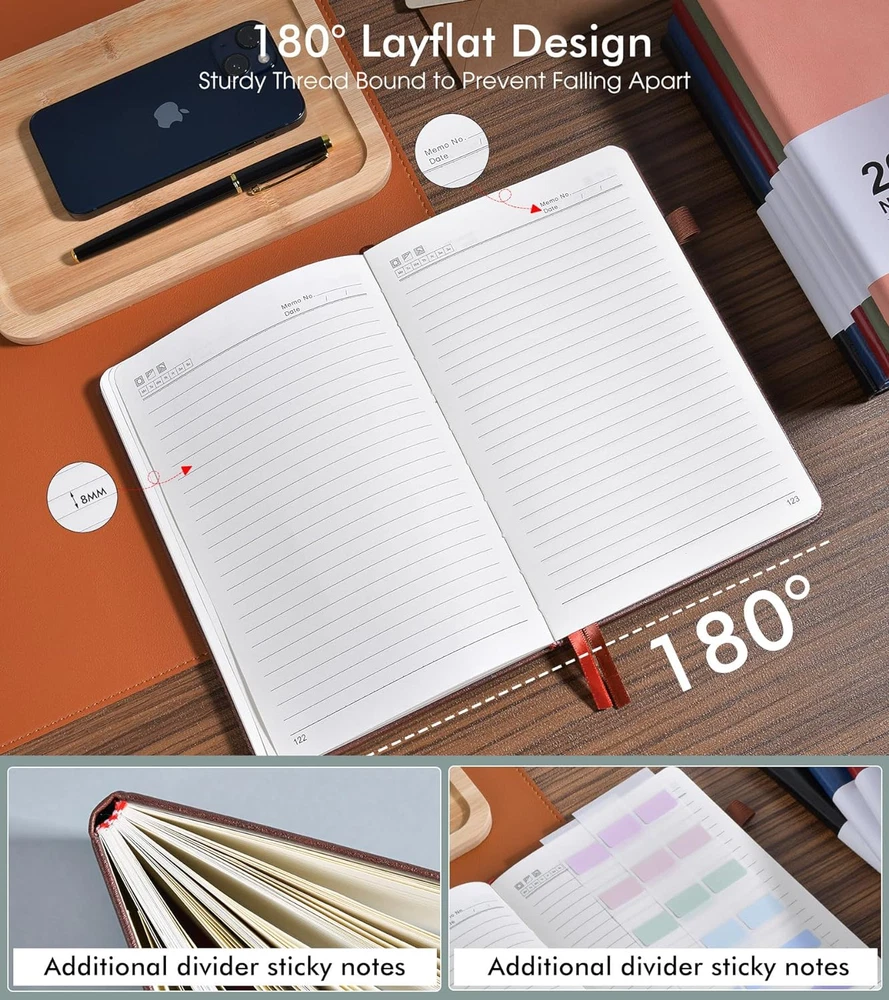 Store New Arrivals Add to Favorite View Feedback Contact Lined Journal Notebook for Men Women, 200 Numbered Pages Leather Hardcover Description Item model number A6 Hardcover-JZDB Style Classic Product Dimensions 8.38"L x 5.75"W Number of Items 1 Color Brown Brand MemoGem Manufacturer Part Number A6 Hardcover-JZDB Pages 200 Pages Item Weight 12.6 ounces Ruling Ruled Ruling Type Ruled Specific Uses For Product Office, Business Work, School, Personal Use Special Feature Pen Holder, Bookmark Cover Material Leather Manufacturer MemoGem 【Hardcover Leather Journal with Pen】Adopt premium hard cover leather make the lined notebooks more sturdy and touched comfortably, and will help to protect the pages inside and provide a comfortable writing surface. Which have a brown sumptuous vintage look, classic design style makes the notebook never goes out of fashion. What's more, our journal notebook is designed with your convenience in mind. It comes with a pen set, providing you with all the tools you need to bring your words to life. 【200 Numbered Pages with Contents】This leather notebook is specifically designed to provide you with all the writing space you need. It includes 200 pages numbers and a 3-page blank table of contents, you can jot down important notes from various pages and note them in the front of the book for easy and fast reference. Premium thick acid-free ivory paper that's smooth to the touch and thicker than your average notebook. Which ensures that there will no ghosting or bleed-through on your pages. 【Versatile and Functional Journal】Our hardcover journaling notebooks come with elastic closure design ensures that the notebook remains securely closed, keeping your notes and thoughts confidential. Additionally, the two exquisite ribbons bookmarks and a pen holder offer practicality, 2 index tabs stickers for papers classifying and marking. Back inner pocket making it easy to organize your things. Small a5 size 5.75"x8.38" notebooks, you can relax and confidently carry it on your trip. 【180°Lay Flat Design】 Make a statement with the stylish brown edge of this journal notebook, adding a touch of vibrancy to your writing experience. The 180°lay flat design allows for seamless writing and effortless page-turning, enhancing your comfort and convenience. Standard 8mm space classic college ruled journals. Each page has “Memo No” and “Date” header to help you keep track of the date. Unleash your creativity with this notebook, tailor-made for journaling notebooks enthusiasts. 【Wide Usage】This leather bound journal for men women is perfect for office, business work, school, or personal use. Its premium quality, combined with the included pen set, makes it suitable for professionals, students, and creative individuals in any setting. From boardrooms to classrooms and home, this notebook is your trusted companion for capturing ideas, taking notes, and unleashing your imagination. The diary journal is idea for a special gift you can share with your friends and family. Product Description Lined Leather Journal for Men Women Our premium college ruled notebooks invite you to document your future plans with style and sophistication. Let your dreams unfold within the pages, as each creative experience takes on a unique and personalized touch. Unleash your imagination with leather notebooks as unique as you are. We believe that your journaling experience should reflect your individuality. That's why our notebooks are crafted with attention to detail, offering a distinct canvas for your thoughts and expressions. Join us in the pursuit of creative expression. Our journal notebooks provide the perfect platform for your unique ideas and stories. Discover the beauty of journaling with us and unlock a world of endless possibilities. 256 Numbered Pages with Contents Effortlessly find the information you need using the user-friendly Content Pages. Whether you're searching for a crucial project detail or revisiting a memorable entry, this convenient feature ensures quick and hassle-free access to the information you seek. Embrace the freedom to let your thoughts flow on the generous 200 pages of this leather bound notebook. With abundant room for all your notes, ideas, and inspirations, it becomes a perfect companion for unleashing your creativity. A5 Lined Leather Journal Whether you need a writing journal, a diary, or a sketchbook, this A5 Leather Journaling Notebooks fits seamlessly into your backpack, allowing you to capture your thoughts and ideas wherever you are. Elevate Your Writing Journey with Convenient Features. Our Leather notebook are designed with thoughtful additions that enhance functionality and convenience. Featuring Ribbon Bookmarks, an Elastic Closure Band, and a Pen Loop, these elements work seamlessly together to provide an exceptional note-taking experience. Add to Cart Add to Cart Add to Cart Add to Cart Add to Cart Add to Cart Customer Reviews 4.8 out of 5 stars 86 4.8 out of 5 stars 86 4.8 out of 5 stars 86 4.8 out of 5 stars 86 4.8 out of 5 stars 86 4.8 out of 5 stars 86 Price $8.99 $ 8 . 99 $8.99 $ 8 . 99 $8.99 $ 8 . 99 $8.99 $ 8 . 99 $8.99 $ 8 . 99 $8.99 $ 8 . 99 Layout Lined Lined Lined Lined Lined Lined Paper A5 A5 A5 A5 A5 A5 Journal Cover Size 5.75 X 8.38 inchs 5.75 X 8.38 inchs 5.75 X 8.38 inchs 5.75 X 8.38 inchs 5.75 X 8.38 inchs 5.75 X 8.38 inchs Number of Pages 200 Pages 200 Pages 200 Pages 200 Pages 200 Pages 200 Pages Accessory Hardcover Pen Hardcover Pen Hardcover Pen Hardcover Pen Hardcover Pen Hardcover Pen Cover Colors Brown Green Pink Red Blue Black ABOUT US We offer the best prices around on high quality products. Our E-store includes media such as books, movies, music and games while offering electronics, toys, sporting apparel, clothing, tools, general home, garden items and more. SHIPPING We are always working hard to ensure your package arrives as soon as possible. Please understand that some factors like weather, high postal tra