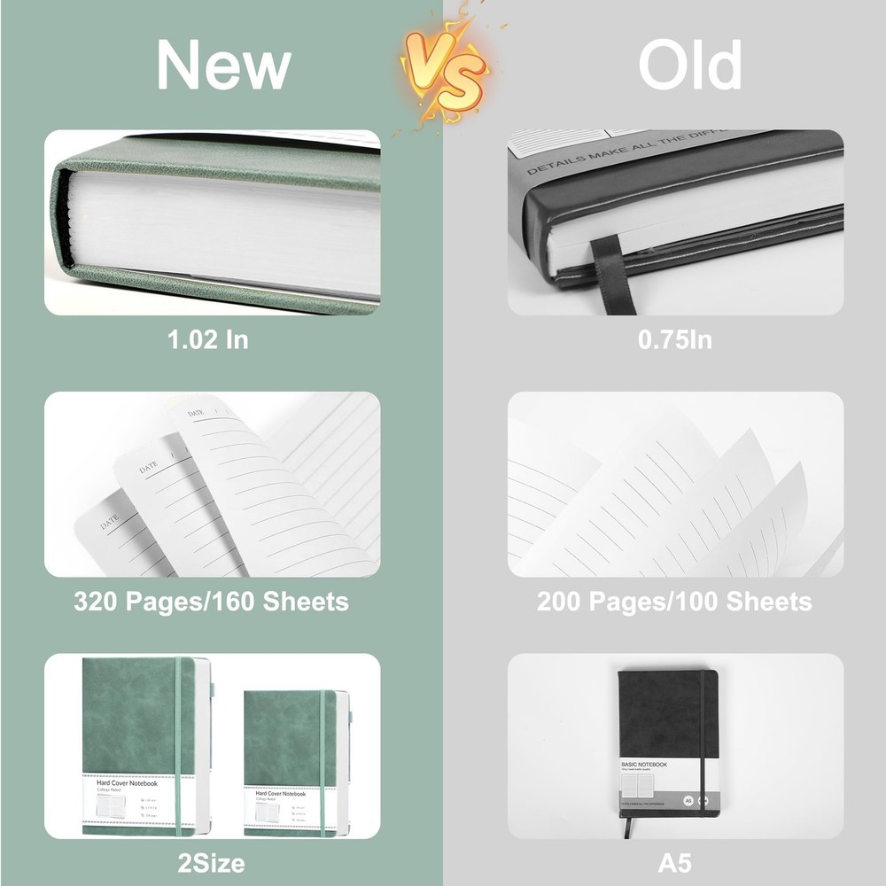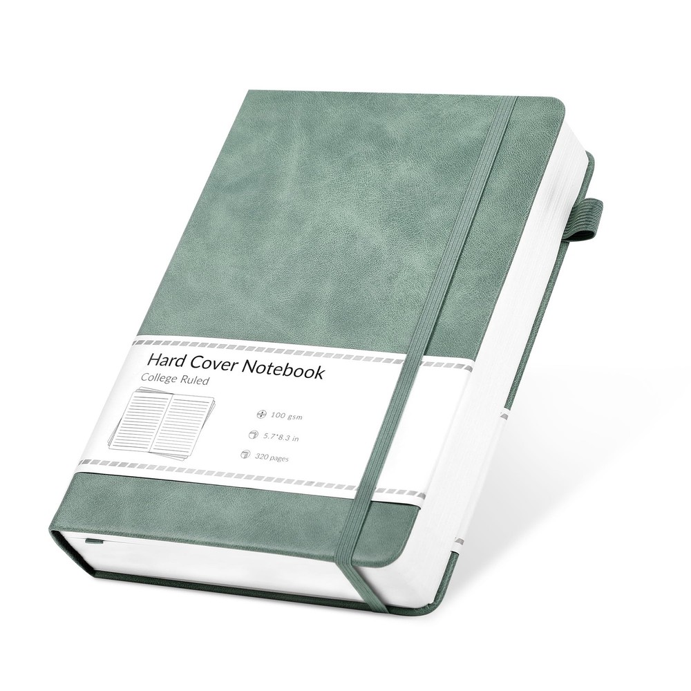 Lined Journal Notebook for Women Men 320 Pages 100 Gsm Paper Thick Leather Journal A5 Hardcover Journals for Writing College Ruled Notebooks for Work Note Taking Diary, 5.7x8.3 In, Green 320 Pages Paper - Journaling notebooks with 320 pages provides you with enough writing space. A5 notebook journal with 100gsm paper, thicker than normal paper, will not cause bleeding, ghosting or smudging and is suitable for most types of pens. Waterproof Hard Cover - Leather journal have a comfortable touch. Durable and waterproof hardcover journal notebook protects the inside of the pages better than a soft cover and provides a comfortable writing surface. Notebook with Pockets - Journal for women comes with a paper pocket and gold trimmed fabric to make the pockets more durable. Journals for writing have colorful ribbon and elastic band and a pen insert on the right side of the journal. College Ruled Journal - Lined journal is a college ruled notebook on 100 GSM paper, and the writing journal is designed to lay flat with colored tabs. There is a DATE bar at the top of each page. Helps you remember those important dates and find the page. Brand Support- You can purchase our products with full confidence! if you don't love the journal notebook due to any quality issues, simply contact us directly within 1 year and we will send you a hassle-free replacement journal for men women or full refund.