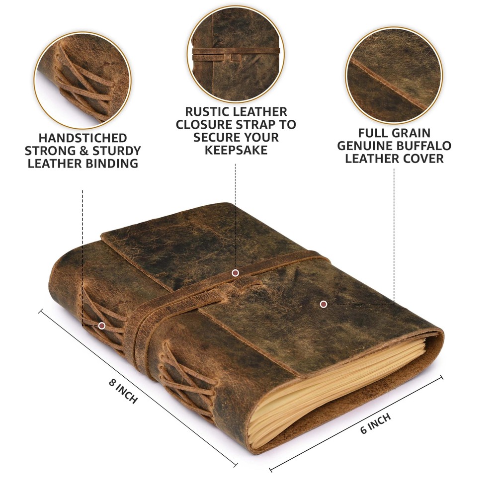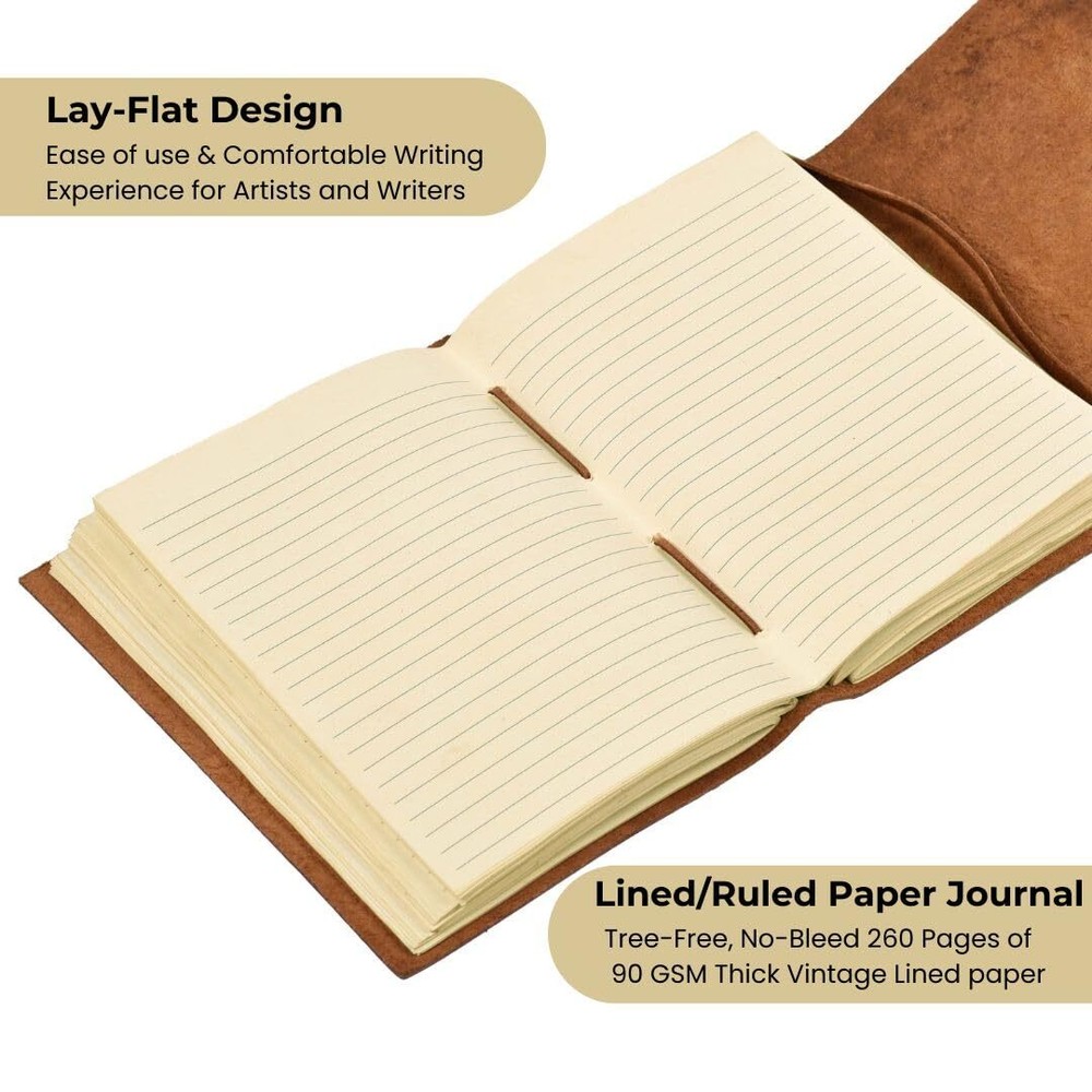 Welcome to our stores! We guarantee you will be satisfied. Lined Paper Leather Bound Journal-260 Pages, Rustic Brown, 8 X 6 Inches (A5) - Book of Shadows - Writing Notebook, Daily Notepad, Travel Diary For Women/Men Product Overview Key Features Handmade Vintage Leather Journal: The journal features a meticulously crafted distressed brown leather cover that exudes a classic and timeless charm. It lays flat for easy use and is perfect for daily use, traveling, and busy schedules. 8"X6" (A5) Size with 260 Lined/Ruled Pages: This journal offers ample space for writing, note-taking, and sketching. Premium, no-bleed paper, it is ideal for professionals, students, and artists. Use it as a notebook, appointment book, daily journal, sketchbook, or travel diary. Secure and Unique Design: The leather flap cover and strap closure provide secure protection for your writing content. The leather cord binding adds durability and rustic charm. The journal features thick 100 GSM paper that works well with pencil, ballpoint, rollerball, gel pen, and fountain pens, with minimal smudging, ghosting, and bleeding. Antique Gift Item: This Leather Notebook makes for a perfect and unique gift for writers and anyone who appreciates the art of journaling. Its vintage appeal, exceptional craftsmanship, and versatile usability make it a cherished keepsake. Payment Information ■ Secure payments through eBay. ■ We accept PayPal and all major credit cards. ■ Immediate payment required upon purchase. ■ For any payment issues, please contact our support team. Shipping Information ■ Orders are shipped to the address provided during checkout. Please verify your address. ■ We process orders within 1 business day (excluding weekends and holidays). ■ Standard delivery time is 3-5 business days. ■ We use trusted carriers like UPS, FedEx, and USPS. ■ Shipping is only available within the contiguous United States. No shipping to Alaska, Hawaii, Puerto Rico, or PO Boxes. ■ If there are any shipping delays, please contact us for support. Return Policy ■ We offer a 30-day return policy. ■ If you are not satisfied with your purchase, you can return it within 30 days for a full refund. ■ Please contact us to obtain the return address before sending back any items. ■ Items must be returned in their original condition and packaging.
