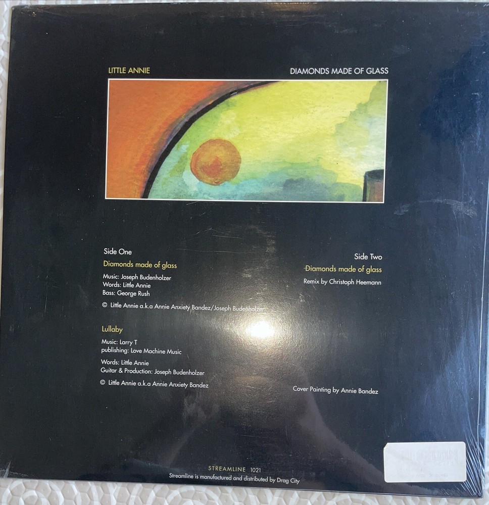 This Little Annie vinyl LP is a first edition release titled "Diamonds Made of Glass" on the Streamline record label. The 12" LP is still sealed and comes in a cardboard sleeve, making it a great addition to any vinyl collection. The artist's pop genre will surely impress any music lover. The vinyl has been graded as Mint (M), and the sleeve is near Mint (NM or M-). This LP is a US Import and is perfect for fans of Little Annie. Minor corner bend see images B4
