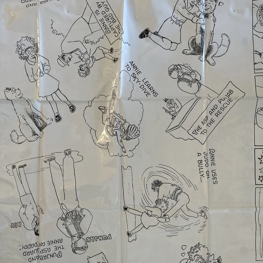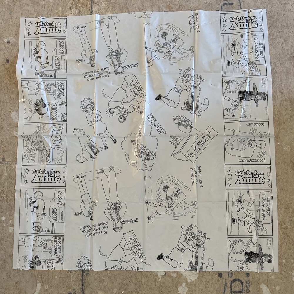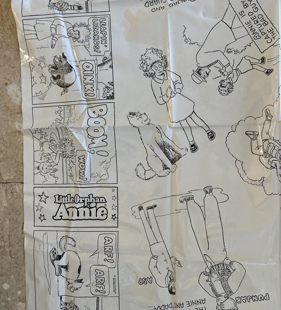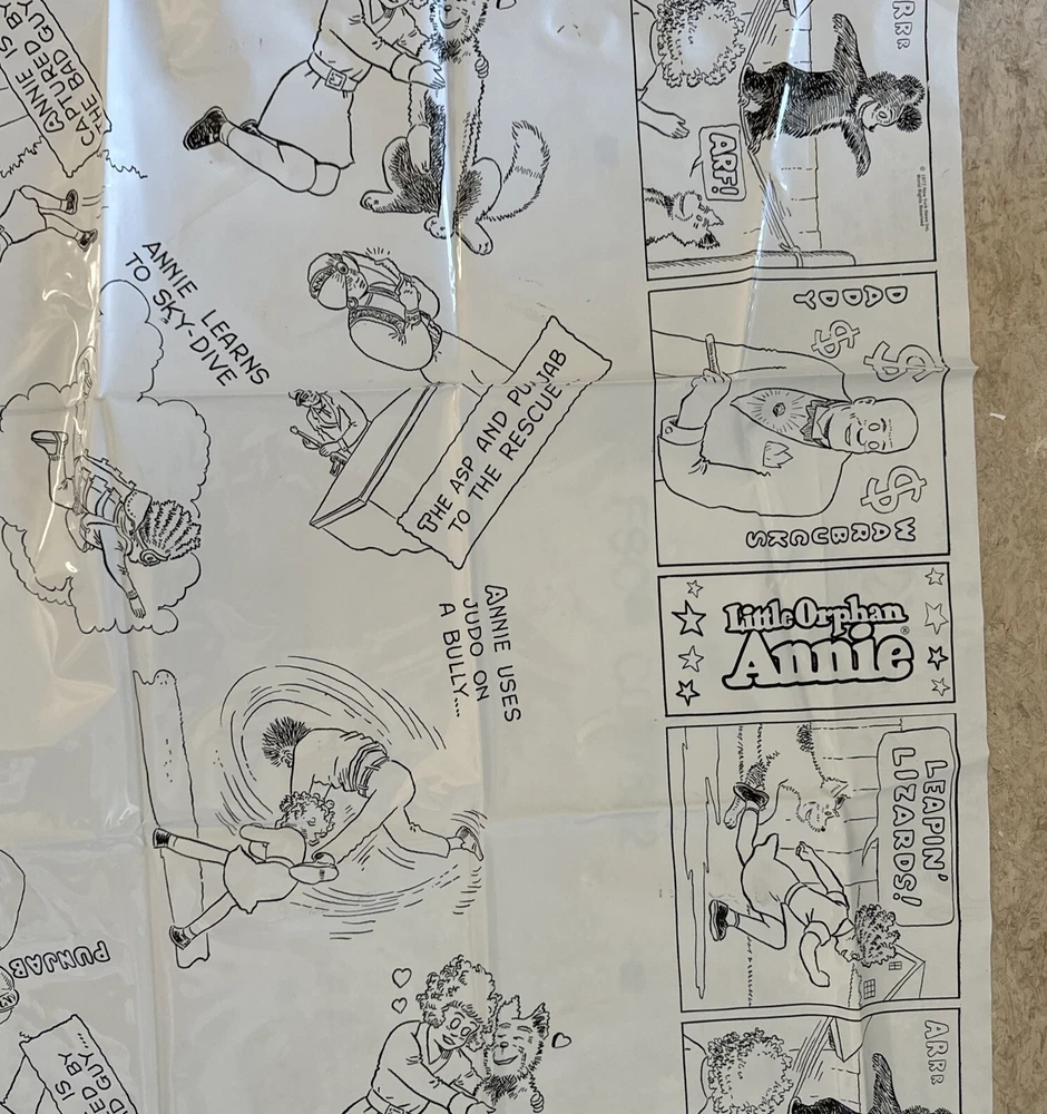 Little Orphan Annie Plastic Coloring Table Cloth w Crayons Easy To Wipe Off 1972. Please see pictures of this lightly used if ever used collectible item. Thanks for visiting !!