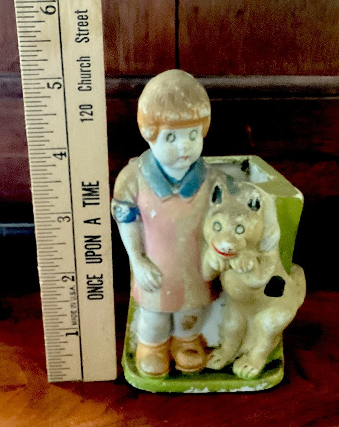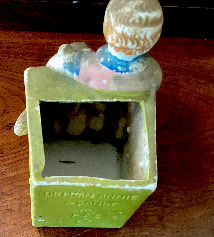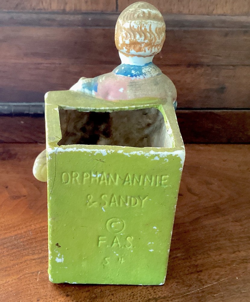 This vintage Little Orphan Annie & Sandy bisque planter features the beloved comic strip character Annie. Made in 1930, this character collectible is part of the Little Orphan Annie character family. Perfect for fans of the classic comic strip, this item is a unique and nostalgic addition to any collection. This planter displays well, however it does have a crack that’s been glued and missing some cold paint. My research says it was made in the 1930s, so for its 90 plus years of existence I think it looks pretty good. Please view photos.