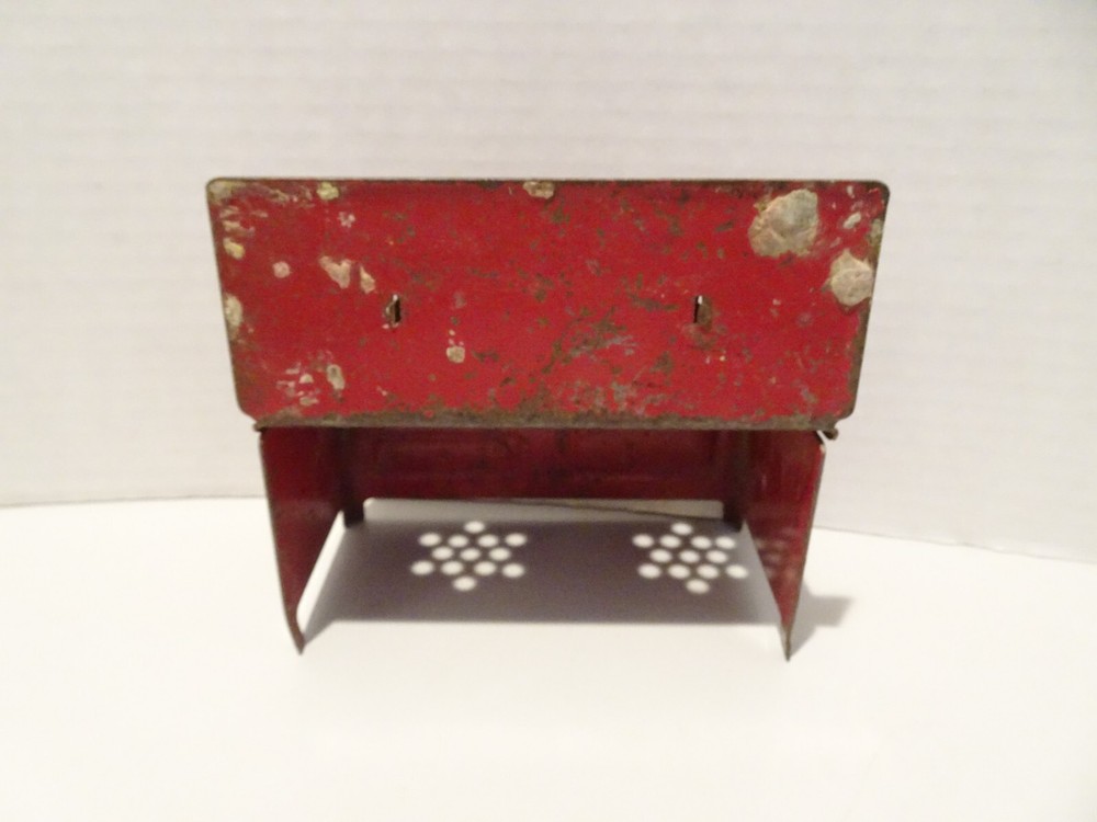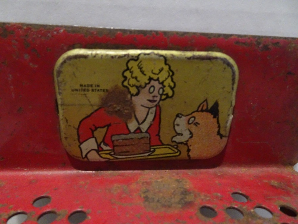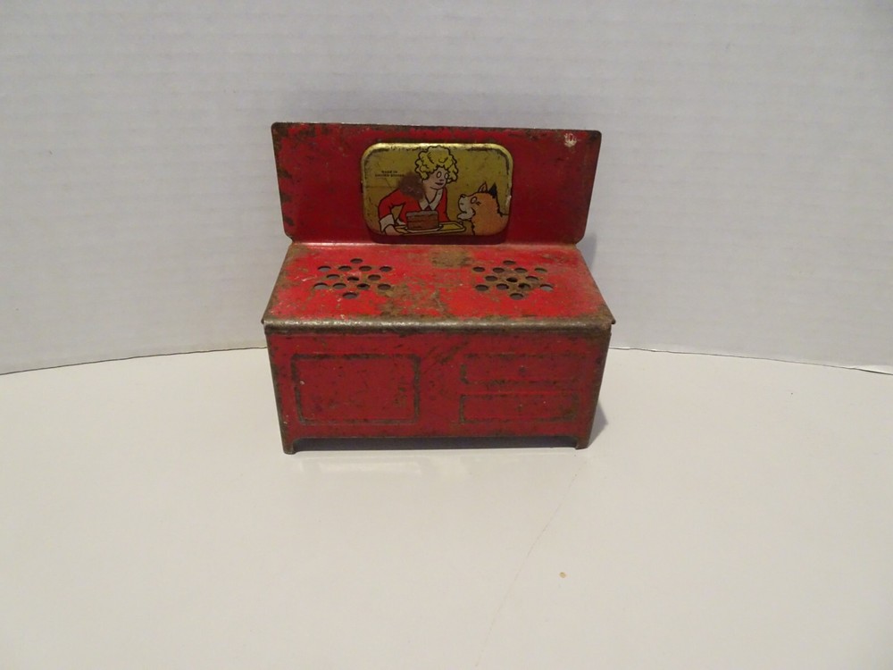 Little Orphan Annie Stove Vintage Metal Red with Annie and Sandy Decoration Measures 5"x4.25" item is pre-owned, shows considerable wear...