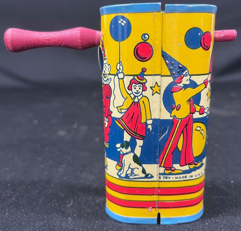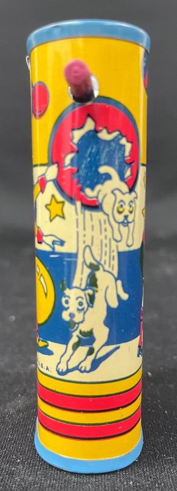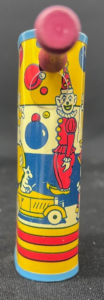 For collectors of vintage toys, this Little Orphan Annie tin noise maker is a must-have addition to your collection. With its charming design and depiction of the beloved character, it is sure to bring a smile to any fan's face. Dating back to the 1930s, this noise maker is a true piece of history. Its intricate details and quality craftsmanship make it a valuable and unique item that any collector would be proud to own. Add it to your collection today and enjoy the nostalgia it brings.