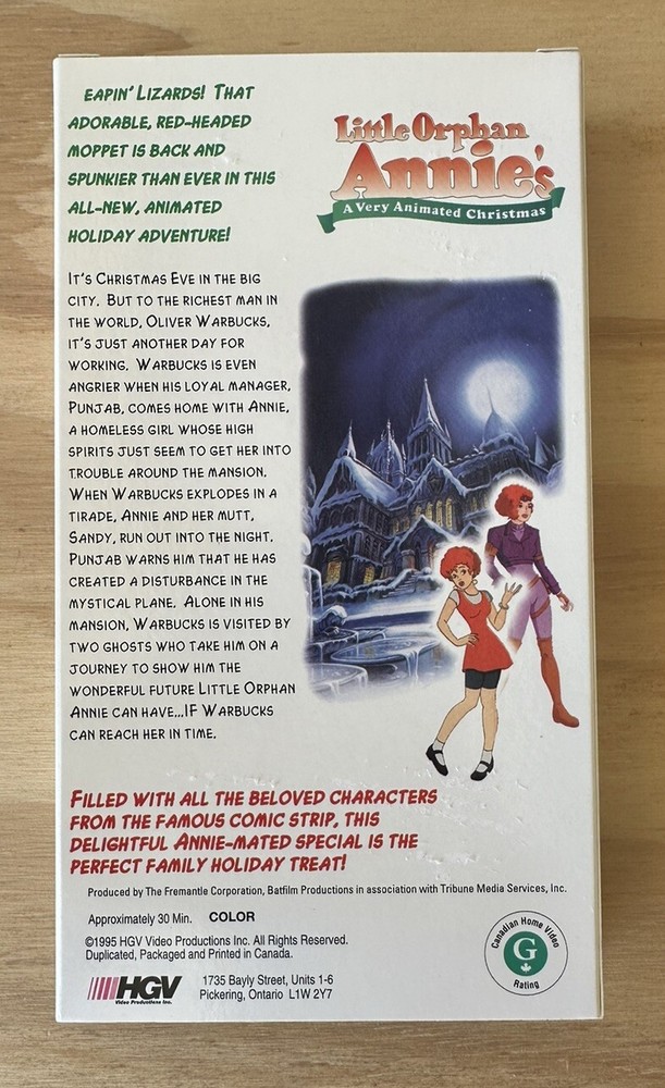 Welcome to my Listing! Title: Little Orphan Annie’s “A Very Animated Christmas” Condition: Like New Format: VHS / VCR UPC : 0090251721236 Notes : Winner will receive the advertised VHS. This item is in like new condition. Shipping: Shipping is free, domestically. I do ship international and this is coordinated through eBay’s Global Shipping Program. Questions: I try my best to list every item accurately with as much pertinent detail as possible. If you have any questions, concerns or other issues - feel free to reach out. I’m easy and pleasant to deal with, so please don’t hesitate.