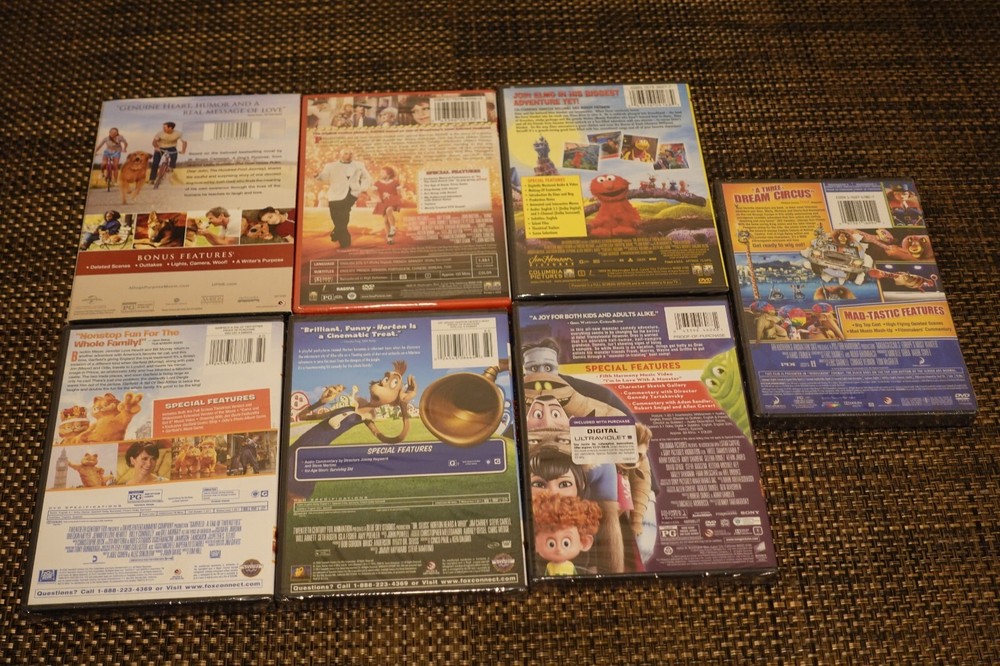 LOT OF 7 BRAND NEW FAMILY MOVIES DVD'S. INCLUDES A DOG'S PURPOSE ANNIE ELMO IN GROUCHLAND GARFIELD A TALE OF TWO KITTTIES HORTON HEARS A WHO HOTEL TRANSYLVANIA 2 MADAGASCAR 3 THESE ARE ALL BRAND NEW & FACTORY SEALED. ITEMS SHIP WITHIN 3 DAYS OF CLEARED PAYMENT.