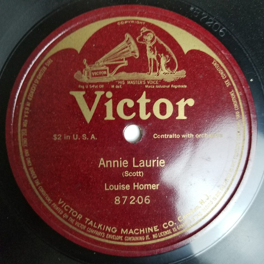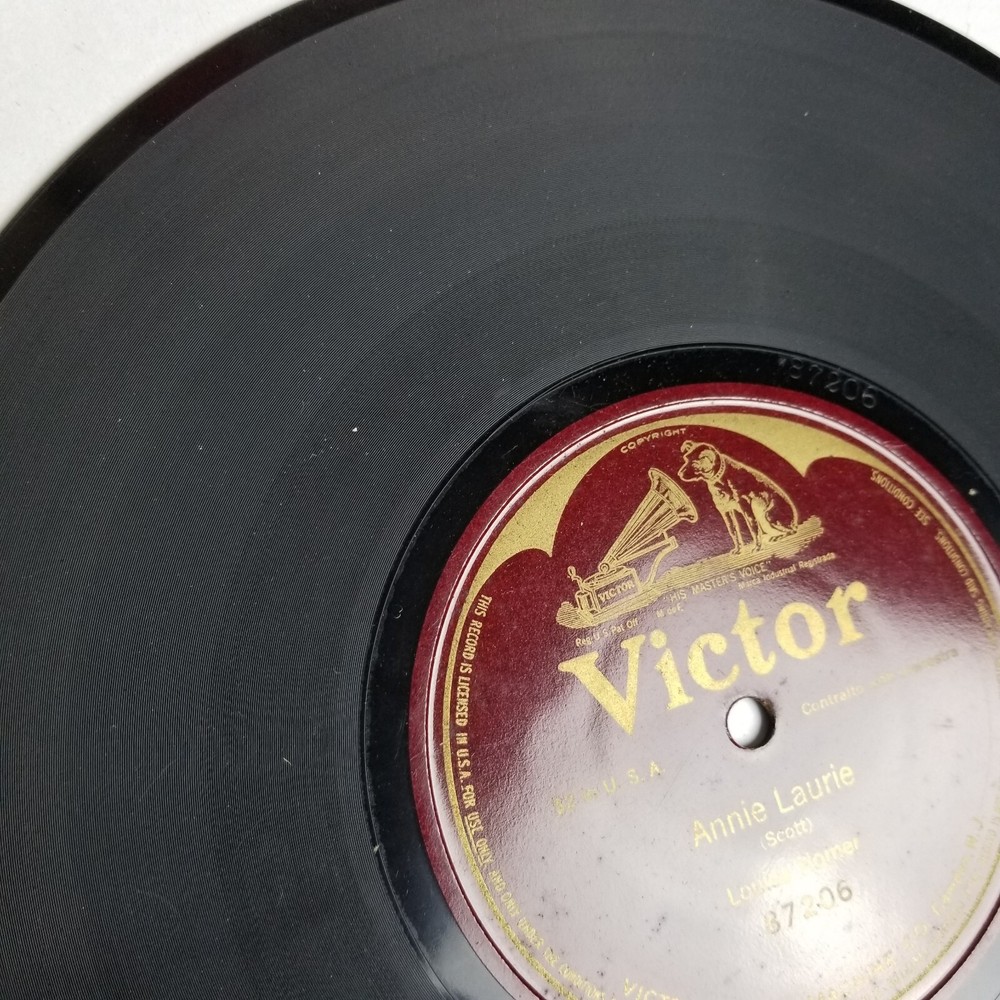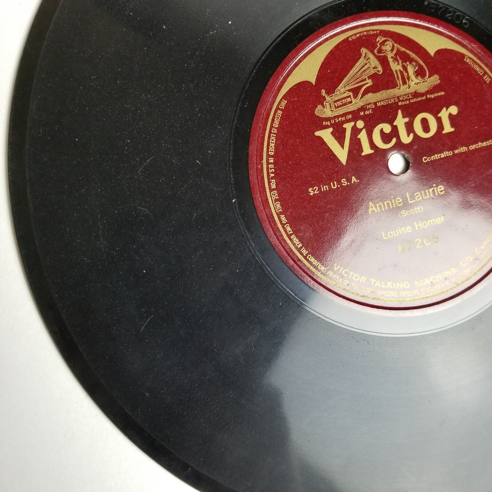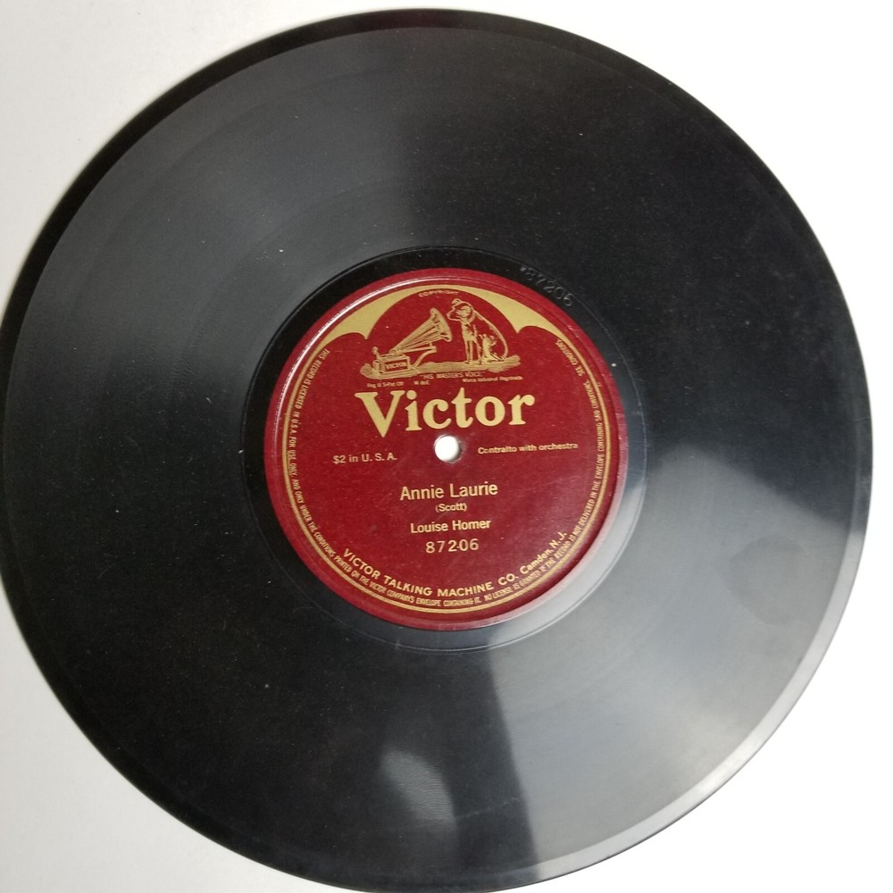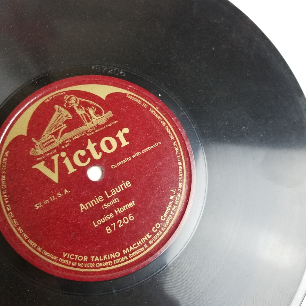 Louise Homer Annie Laurie Single Sided 10'' 78rpm Victor 87206 *All records are not cleaned and not play tested , can be play tested upon request * (I am not a professional vinyl grader ) International shipping is done via eBay's Global Shipping Program. All records are shipped in professional 7'' & 12'' box mailers with additional stiffening pads and bubble wrapped . Thanks for looking ! Message me with any questions or concerns ! We are all human and make mistakes , all items are inspected to my best ability . Please contact me before leaving negative feedback !