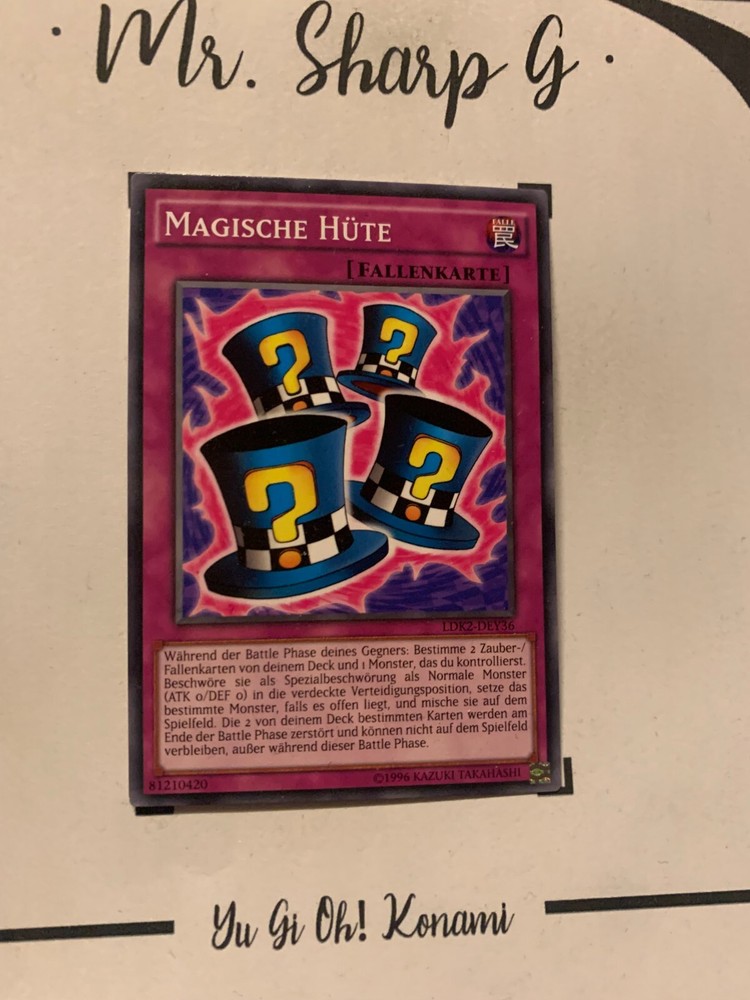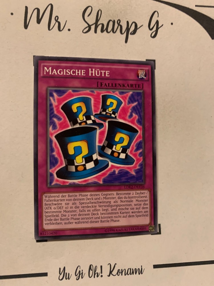 - Mr. Sharp G - - Online Store - TRADING CARDS-TCG-COLLECTION-SETS-TOURNAMENT-Yu Gi Oh! Konami * * * MAGISCHE HÜTE - LDK2-DEY36 - Bitte schauen Sie sich die beigefügten Bilder an, um einen vollständigen Überblick über den Zustand jedes Artikels zu erhalten. - Zustand des Artikels: Neu* - in einem neuwertigem Zustand. (* Neuer Zustand - kann aber leichte Mängel wie 'whitening', leichte Eindrücke, Dellen u.a. haben - die von der Herstellung der Karte aus Produktion stammen, bitte den Bildern und in der Beschreibung den Zustand entgegennehmen) - Typ/ Serie: FALLENKARTE / LDK2-DEY36 - Seltenheitsstufe/ Rarity: COMMON - Edition : LEGENDARY DECKS II / 2016 / DEUTSCH / NORMAL * * * + Kartenschutzhülle & Toploader inklusiver im Preis + mehrfache Bestellung = einmalige Versandkosten + versicherter Versand Bestellung in Höhe - v. 8,50EUR in Deutschland/ Inland - v. 12,50EUR im Ausland/ International + Großbestellungen kostenloser Versand Inland und International - Bei Fragen, Details, nicht im Bestand gewünschte Karten/ Artikel oder Versandgutschriften schreiben Sie uns! Wir freuen uns auf Ihre Nachricht! - Vielen Dank für Ihr Vertrauen, Unterstützung und Besuch in unserem Store ! - Ihr Mr. Sharp G Team