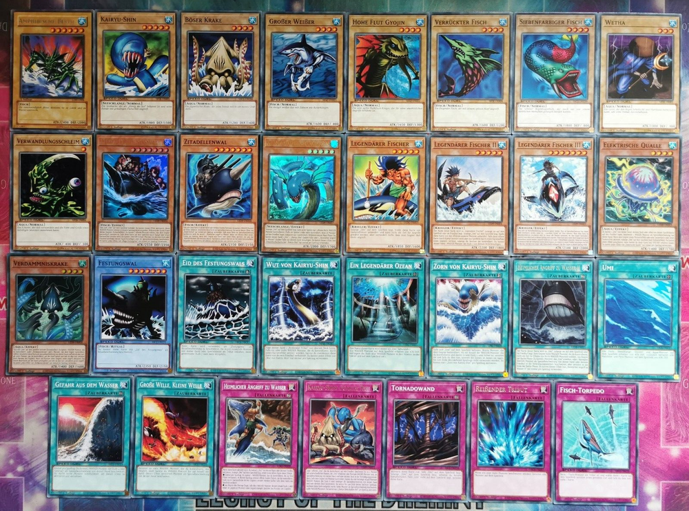 Hallo Ebayer, willkommen bei meinem Ebay Angebot. Folgendes Deckthema kannst du in diesem Angebot erwerben: MAKO TSUNAMIS LEGENDÄRER FISCHER ( = insgesamt 31 Karten ) Anmerkung: Da die Karten in der Anime-Serie f ür die Duellanten deutlich seltener und somit auch schwerer zu bekommen sind als im realen Leben, spielt nahezu jeder Anime-Held nur 1 Exemplar von jeder Karte in seinem Deck. Es gibt halt nur wenige Ausnahmen,wo mehr gespielt werden. Monster ( 18 ): Amphibische Bestie Rare Kairyu - Shin Böser Krake Großer Weißer Hohe Flut Gyojin Verrückter Fisch Siebenfarbiger Fisch Wetha Verwandlungsschleim Mega - Festungswal Ultra Rare Zitadellenwal Ozeandrachenherrscher - Kairyu-Shin Ultra Rare Legendärer Fischer Legendärer Fischer II Legendärer Fischer III Elektrische Qualle Super Rare Verdammniskrake Super Rare Festungswal Zauber ( 8 ): Eid des Festungswal Wut von Kairyu - Shin Ein Legendärer Ozean Zorn von Kairyu - Shin Heimlicher Angriff zu Wasser II Rare Umi Gefahr aus dem Wasser Große Welle, Kleine Welle Fallen ( 5 ): Heimlicher Angriff zu Wasser Kairyu - Shins dunkles Riff Rare Tornadowand Reißender Tribut Rare Fisch -Torpedo Das Deck besteht komplett aus deutschen Karten Alle Karten sind 100% ORIGINAL Konami. Alle Karten sind im Zustand* Mint,Near Mint und Excellent ( maximal vielleicht 3-4 Karten ) Alle Karten werden knicksicher verpackt und ich verschicke Werktags innerhalb von 24 Stunden. Versandkosten: - Für dieses Angebot gilt kostenloser Versand innerhalb Deutschlands - Auf Wunsch gibt es einen versicherten Versand für 2€ Mehrzahlung. For international Buyers only: - For this offer: International shipping is ALWAYS with insurance and tracking No risk for me! No risk for the Buyer! * Legende der Kartenzustände: Mint = zumeist direkt aus dem Booster ( makelos ) Near Mint = Minimale Abnutzungsspuren ( z.B. kleine Kratzer,kleine weiße Punkte oder kleine Schmutzflecken; meist kaum sichtbar ) Excellent = Kleine Abnutzungsspuren ( z.B. etwas weiße Ränder, leicht abgenutzte Ecken, kleine Schmutzflecken ) Good = Schon deutlich sichtbare Abnutzungsspuren ( z.B. stark angeschlagene Ecken, komplett weiße Ränder, verschmutzt aber ohne Knicke und turnierlegal ) Played = Ziemlich starke Abnutzungen mit Knick ( aber noch turnierlegal ) Poor = Extreme Abnutzungen mit einem oder mehreren Knicken ( nicht mehr turnierlegal ) !!! Das Bild ist ein Lagerbestandsbild von einem der hier angebotenen Sets !!! ( Ich muss das leider so schreiben,da ich dieses Set ja mehrfach anbiete. Das Foto ist somit aber ein Originalfoto von einem Set,was ich zufällig aus der Menge ausgewählt habe )