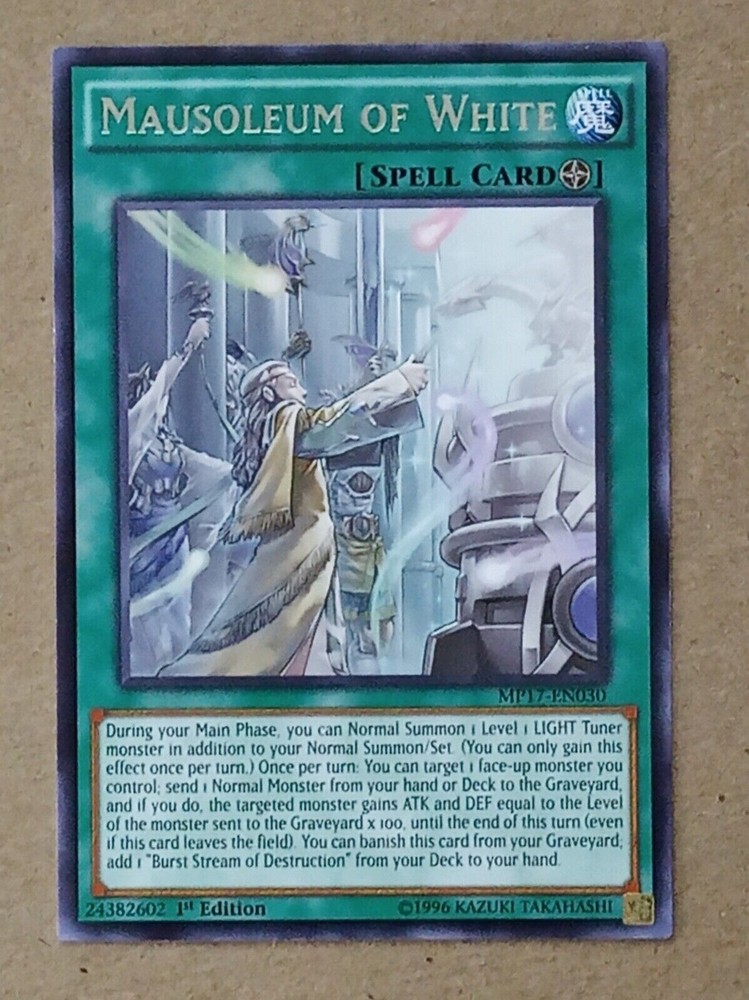 You are bidding on : 1 x Yu-Gi-Oh 2017 Mega-Tins MAUSOLEUM OF WHITE (Rare - 1st Edition) MP17-EN030 All cards are in Near Mint condition unless specified Pictures are stock pictures ONLY it is not of the actual card How we identify the condition of the card: Near Mint: Most of the time cards in this condition are pack fresh but, the card may have minor flaws that are not visible with a quick inspection, small white dots or scratches that you have to closely examine the card to see. Excellent: Overall the card looks near mint but may have minor scratches, slightly worn edges that are visible but they do not interfere with the way the card looks. Lightly Played: Similar to a card in excellent condition except there is more whitening around the edges and the corners are a little more worn or slight bends or creases that are visible. There might be some slight whitening on the back or front of the card. Imperfections will be visible with a quick inspection. When the card is sleeved the imperfections will not be noticeable and the card will look just like the rest of your cards Played: There is a large amount of whitening around the edges and the corners have a good amount of damage, many scratches, bends and/or creases on the card. When the card is sleeved it can still be played Shipping and Handling : Canada Shipping is $1.75 CAD Tracking is offered for $13 CAD BUT tracking is required on any purchases that are over $50 CAD Please contact us for combined shipping if interested in purchasing multiple cards before paying USA Shipping is $2.50 CAD Regular Mail for all orders under $19.99 Shipping is $7.99 CAD with USPS tracking for all orders $19.99 and over Please contact us for combined shipping if interested in purchasing multiple cards before paying INTERNATIONAL Shipping is $5.99 CAD with regular mail Tracking is offered for $29.99 CAD BUT tracking is required for purchases over $50 CAD Please contact us for combined shipping if interested in purchasing multiple cards before you pay Combined shipping: We offer combined shipping: each and every additional item after the first one is only $0.25 (25 cents). To obtain combined shipping fees, please use the shopping cart or ask for the combined shipping invoice BEFORE you pay. If you pay item-by-item, right away after the purchase, we will not be able to offer you combined shipping anymore. Handling Your order will be shipped 1-3 business days after payment has been received *“Business days” are normal weekdays. Saturdays, Sundays, and major holidays do not count as business days. Cards purchased are packaged and shipped in a sleeve, toploaders, a team bag and an envelope to ensure protection of cards Payment : Payments should be made within 5 days after purchase Epic Cards and Games Any questions feel free to email us and allow 1 day for a response. Thanks for looking! Sales Tax (Canada Only) : Purchases made by Canadian residents are subject to applicable GST/HST, depending on your province/territory. (If you do not agree to this, please do not bid. We have a registered business in Canada and are required by law to charge taxes to anything shipped within the country.) Thank you for shopping with Epic Cards and Games