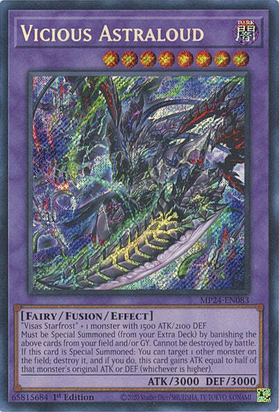 (MISPRINT) Vicious Astraloud MP24-EN083 1st Edition Secret Rare Tin Mega Pack Item was pulled and sleeved Items will be shipped in a sleeve + top loader Please check out my other items if there is anything you need PLEASE NOTE WHILE BUYING; While for the most part the item should be sent out to ship within a day on my part, please allow up to three business days for the item to be sent out. Due to the pandemic, Couriers are delivering slower than usual. If you purchase this item it may arrive later than expected due to shipping which is out of my hands. If you purchase from outside of Canada; I am not responsible for any customs, duties, taxes or any other cost your country may appose on you for the shipment/reception of the item.