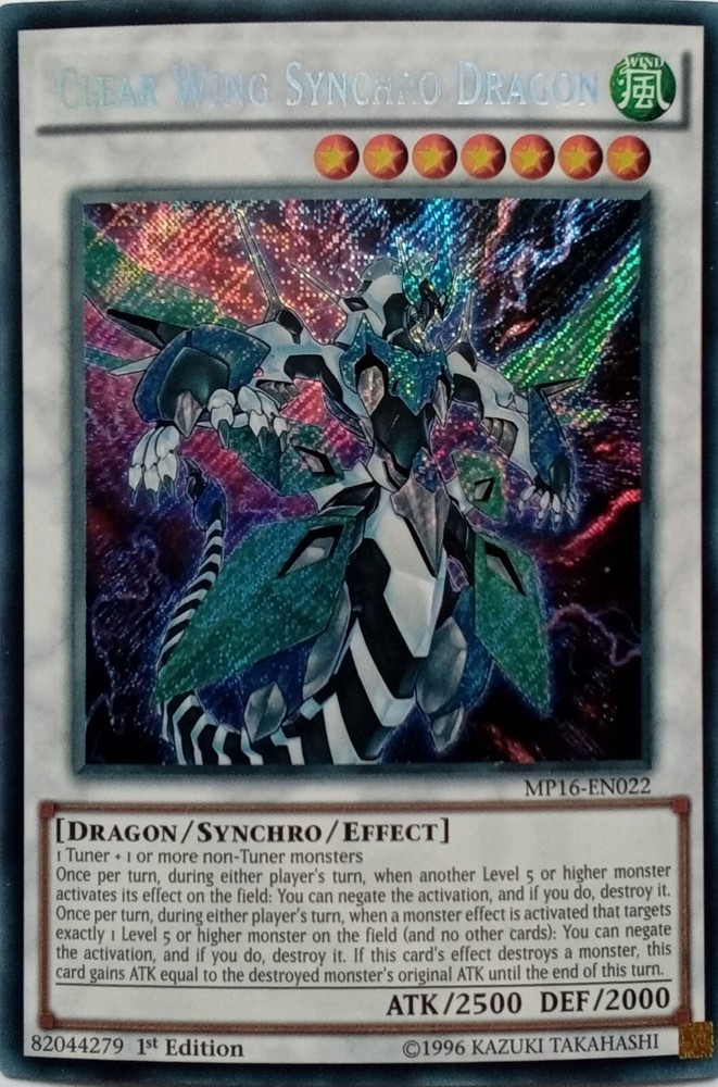 MP16-EN022 CLEAR WING SYNCHRO DRAGON SECRET RARE 1ST EDITION ALL YU-GI-OH CARDS I SELL ARE KONAMI TOURNAMENT LEGAL. CARDS ARE ALL NEAR MINT TO LIGHTLY PLAYED CONDITION POSTAGE IS FREE SO YOU CAN BUY AS MANY CARDS AS YOU WANT FROM US AND NOT PAY A PENNY POSTAGE. IF YOU HAVE ANY QUESTIONS PLEASE FEEL FREE TO CONTACT ME. Track Page Views With Auctiva's FREE Counter
