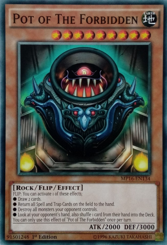 MP16-EN134 POT OF THE FORBIDDEN COMMON 1ST EDITION ALL YU-GI-OH CARDS I SELL ARE KONAMI TOURNAMENT LEGAL. CARDS ARE ALL NEAR MINT TO LIGHTLY PLAYED CONDITION POSTAGE IS FREE SO YOU CAN BUY AS MANY CARDS AS YOU WANT FROM US AND NOT PAY A PENNY POSTAGE. IF YOU HAVE ANY QUESTIONS PLEASE FEEL FREE TO CONTACT ME. Track Page Views With Auctiva's FREE Counter