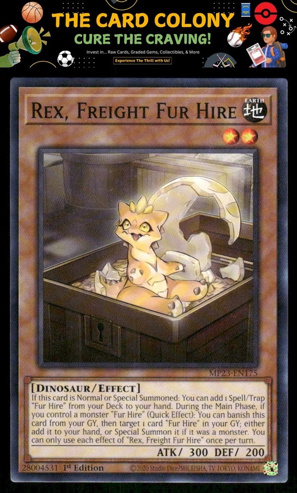 This is a nice example of a 25th Anniversary Tin: Dueling Heroes Mega Pack #MP23-EN175 Rex, Freight Fur Hire Other important information about this card: In 2023 Rex, Freight Fur Hire played for the . Please check out our other listings for more great cards.