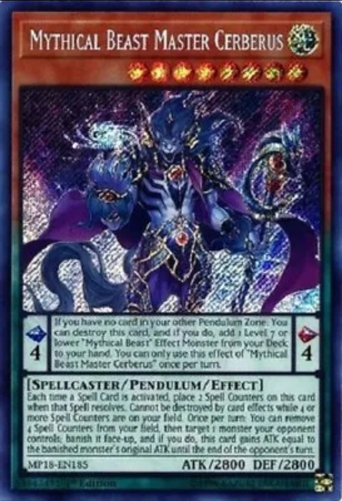 This Yu-Gi-Oh! TCG card is a highly sought after Masters Edition Secret Rare. The Mythical Beast Master Cerberus is a powerful Monster card that is perfect for any collector or player. With its 1st Edition Features, this card is a must-have for any Yu-Gi-Oh! enthusiast. The card is in ungraded condition and has not been modified. It is suitable for boys and girls aged 7 years and above. The card name is clear and easy to read, making it an excellent addition to any collection. Buy this card today and add it to your Yu-Gi-Oh! CCG Individual Cards collection.