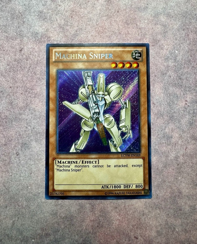 Premium Yu-Gi-Oh cards, all in “mint” or “near mint” condition. These cards have been meticulously cared for and have never been played with. From the moment they were opened, each card was placed in protective sleeves, ensuring they remain in pristine condition. Ideal for collectors and players who appreciate high-quality cards. This exceptional level of care applies to all my other card listings as well. Secure these top-notch cards for your collection today! The "Machina Sniper" card is from the Yu-Gi-Oh! TCG Legendary Collection 3: Yugi's World set. It is a Machine-type creature with an Attack/Power of 1800 and a Defense/Toughness of 800. This Secret Rare card is in English and has unlimited features. Manufactured by Konami, the Machina Sniper card is an Effect card with the card number LCYW-EN169. It is a sought-after collectible for players and collectors of the Yu-Gi-Oh! trading card game.