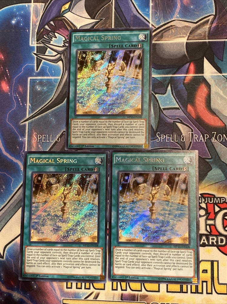 Introducing the Magical Spring card from the 2018 Mega TiN Pack, featuring a Spell-Normal card type and a Secret Rare rarity. This card is perfect for collectors and fans of the Yu-Gi-Oh! TCG with its 1st Edition feature and near mint or better condition. The card number Mp15-En108 and age level of 6+ make it a must-have addition to your collection. This card is suitable for anyone who loves the game and wants to add value to their card collection. Don't miss out on this amazing opportunity to own the Magical Spring card!