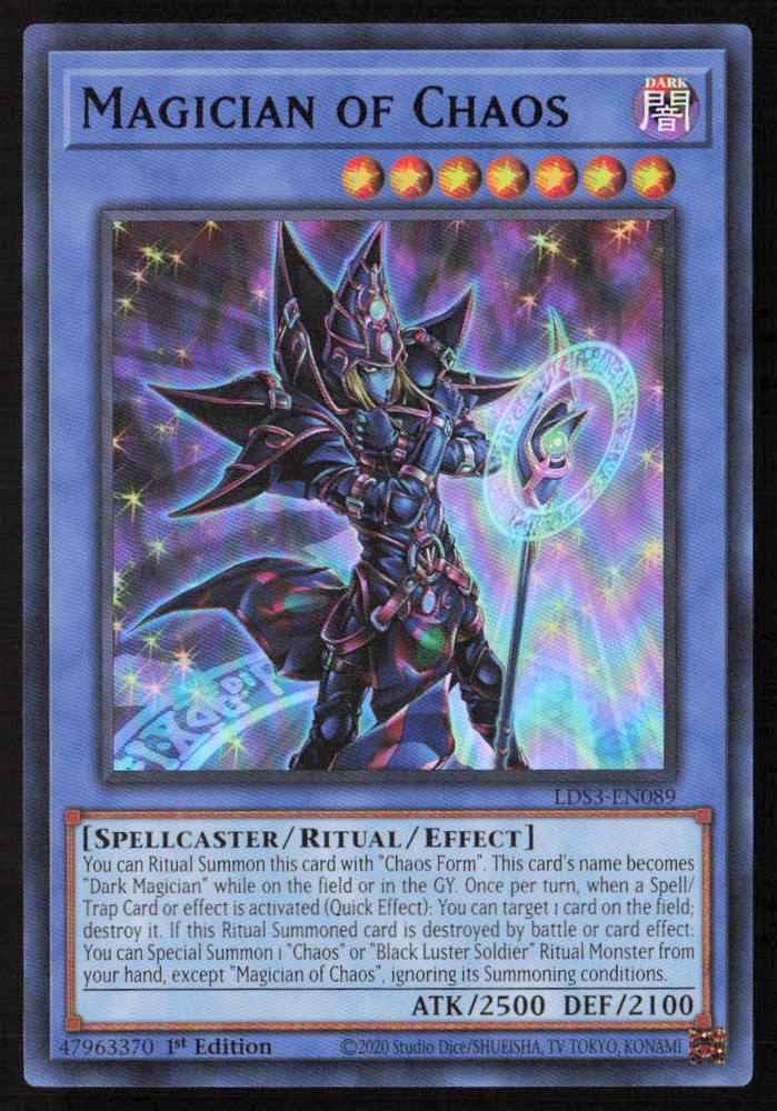 You will receive a Near Mint or Better, Magician of Chaos (Blue) Legendary Duelists: Season 3 #LDS3-EN089 card Please note, we are not a professional graders and the condition of a raw card is highly subjective. Please refer to the high quality scans of the card included in this auction to determine the condition of the card for yourself. Any questions, please just ask! All cards are in EX - NM+ condition, unless stated otherwise. Chrome cards from various brands might have minor light surface scratches, which is typical with these types of cards. Any major, deep scratches will be noted, if present. Coupons and other discounts will not apply to Accepted Offers. We take pride in the condition of all our cards, including commons. Our promise to you is, we would not sell a card in a condition we would not want to receive ourselves! We are also very proud of our shipping standards, and all cards, including commons will come in a penny sleeve and very well protected! Please check out our other Sports Cards listings, as the more you buy, the buy you save! Be sure to save us as a Seller, as we are always growing, and listing cards daily! Listed with Card Dealer Pro Use the code " MSC " when signing up to Card Dealer Pro to receive 500 FREE Scans!