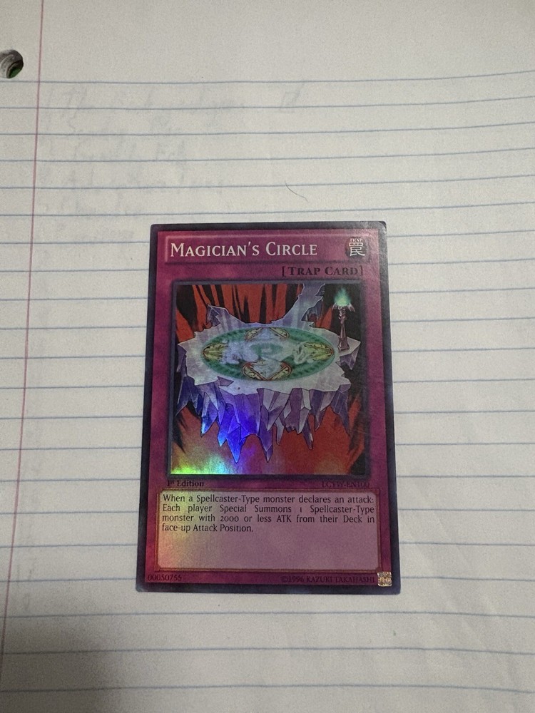 Magician's Circle LCYW-EN100 from the Legendary Collection 3: Yugi's World set is a must-have for any serious Yu-Gi-Oh! TCG collector. This Super Rare card, produced by Konami, features the 1st Edition marker, signifying its value and collectability. The card is in near mint or better condition and has not been graded. It is perfect for players and collectors alike who want to enhance their game or collection with a classic card from the Yu-Gi-Oh! TCG series. Add Magician's Circle to your deck or display it proudly as part of your collection.