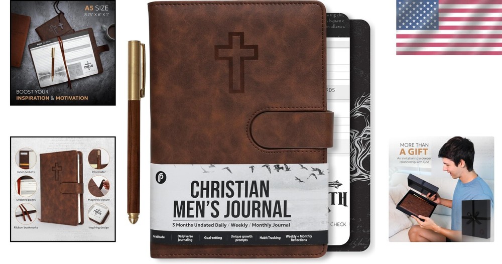 Magnetic Leather Christian Devotional Journal & Planner - Perfect Gift for Men < class="slides"> ‹ › ‹ › ‹ › ‹ › ‹ › ‹ › ‹ › ‹ › ‹ › ‹ › ‹ › Magnetic Leather Christian Devotional Journal & Planner Perfect Gift for Men IGNITE YOUR SPIRITUAL JOURNEY: Ever feel like you're just going through the motions? Our Christian Motivational & Inspiration Journal is your secret weapon to a more meaningful faith & wisdom. It's not just a journal; it's a personal conversation with God, a roadmap to a richer spiritual life & gratitude. YOUR FAITHFUL COMPANION: Rain or shine, our water-resistant leather journal is ready for the journey every day. It's tough, just like your faith. Carry it anywhere and let it be part of your everyday life. More than a journal; it’s a testament to your unshakeable belief. Features: Magnetic latch for privacy of your spiritual reflections. Handy inner pockets to keep your precious mementos safe and organized. Perfectly sized at 8.5" tall x 5.5" wide - portable yet spacious. 190 pages filled with prompts and Biblical verses for guidance. THE GIFT OF A LIFETIME: Imagine the joy on their face when they unwrap this beautiful gift! Encased in a stunning black box with a ribbon bow, our journal is more than a gift; it’s an invitation to a deeper relationship with God. Perfect for Christmas, birthdays, or just because. COMFORT IN EVERY WORD: With ample space for your thoughts, prayers, and journeys, this journal ensures that every word matters. It's small enough to carry but large enough to comfortably pour your heart out and explore your faith journey. Why choose our Magnetic Leather Christian Devotional Journal? Are you ready to transform your spiritual practices? This luxurious leather journal is more than a place to write; it’s a sanctuary for your soul. With its thoughtful design and ideal size, create a beautiful relationship with God and ignite your spirit today! Shipping Free & Fast Shipping - We offer free shipping to most of the USA with a normal delivery time of 3-7 days. However, due to the current situation, additional delivery time (up to 3 weeks) may be required for some items. Alternative Carriers - We may use alternative carriers (e.g. USPS, FedEx, UPS, etc.) to ensure your package arrives safely and on time. Due to the use of multiple carriers, we are unable to provide a tracking number automatically. Handling Time - Orders are processed and shipped within 1-2 business days of receiving cleared payment. Shipping Restrictions - Shipping to Alaska, Hawaii, Puerto Rico, Guam, and other US territories may incur shipping charges or delivery restrictions. Please contact us before ordering, or your order can be refunded/cancelled. State Restrictions - There may be restrictions based on your state of purchase. For example, certain items may not be shipped to California due to state regulations. Contact for Tracking Updates - If you require tracking updates or have any concerns about the delivery of your order, please feel free to contact us, and we will be happy to assist you. Return 30-Day Hassle-Free Returns - We want you to be completely satisfied with your purchase. If you are not, you can return the item within 30 days of receiving it for a full refund or exchange. Easy Return Process - To start a return, simply contact us and we will provide you with a prepaid return shipping label and detailed instructions. Restocking Fee - There are no restocking fees for returns. However, the buyer is responsible for return shipping costs if the return is not due to a seller's error. Refund Processing Time - Refunds will be processed within 5 business days of receiving the returned item in its condition. Payment We accept all major credit cards, PayPal, and Apple Pay for your convenience. Your payment information is secure and encrypted to ensure a safe and seamless transaction. Please complete your payment within 3 days of purchase to avoid any delays in shipping. Feedback Your feedback is extremely important to us. We strive to provide the best products and customer service possible. If you are satisfied with your purchase, please take a moment to leave us a positive review. If you have any concerns or issues with your order, please contact us before leaving negative feedback. We are committed to resolving any problems and ensuring your satisfaction. Contact Us If you have any questions or concerns, please feel free to out to our customer support team. You can contact us through the eBay messaging system. We are available Monday to Friday, 9:00 am to 5:00 pm EST, and we will do our best to respond to your inquiry within 24 hours. Buy it now and enjoy a pleasant shopping experience! Number of Pages: 190 pages Unit Quantity: 1.0 Author: Christian Language: English Topic: Devotions Genre: Religious & Spiritual Features: Magnetic,Water-resistant,leather,Inner pockets,Magnetic latch Intended Audience: Adults Book Title: Journal Format: Journal Type: Journal Item Height: 1 Inches