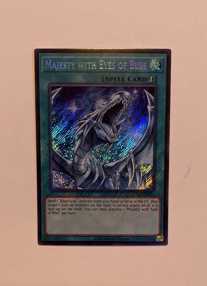 | Card Text | Send 1 "Blue-Eyes" monster from your hand or Deck to the Graveyard, then target 1 face-up monster on the field; it cannot attack while it is face-up on the field. You can only activate 1 "Majesty with Eyes of Blue" per turn. |