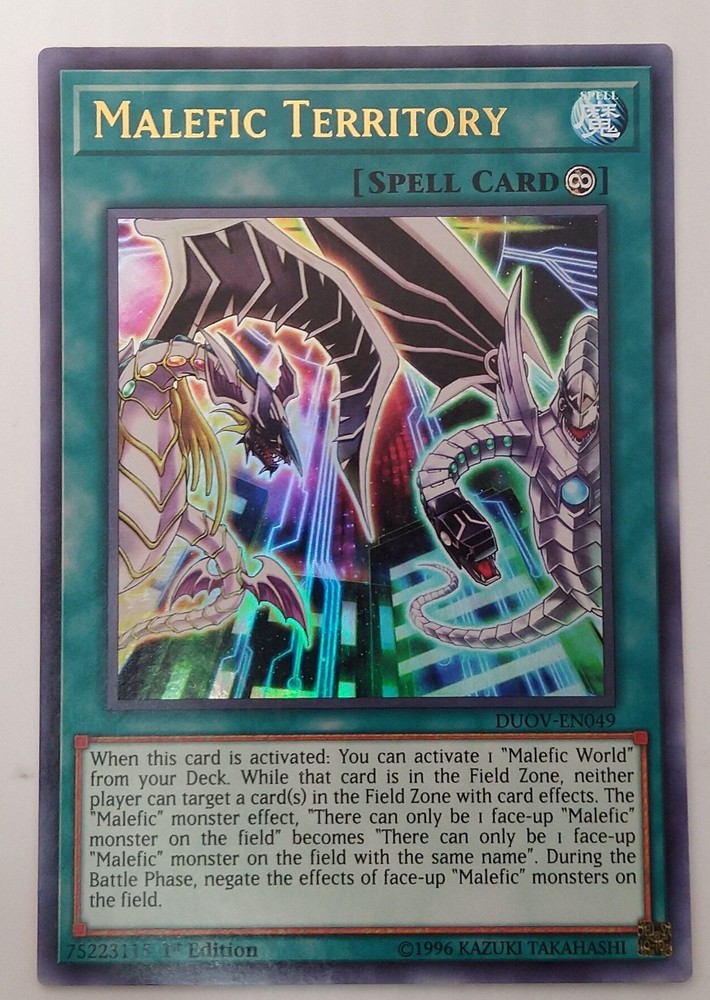 | Card Text | When this card is activated: You can activate 1 "Malefic World" from your Deck. While that card is in the Field Zone, neither player can target a card(s) in the Field Zone with card effects. The "Malefic" monster effect, "There can only be 1 face-up "Malefic" monster on the field" becomes "There can only be 1 face-up "Malefic" monster on the field with the same name". During the Battle Phase, negate the effects of face-up "Malefic" monsters on the field. |