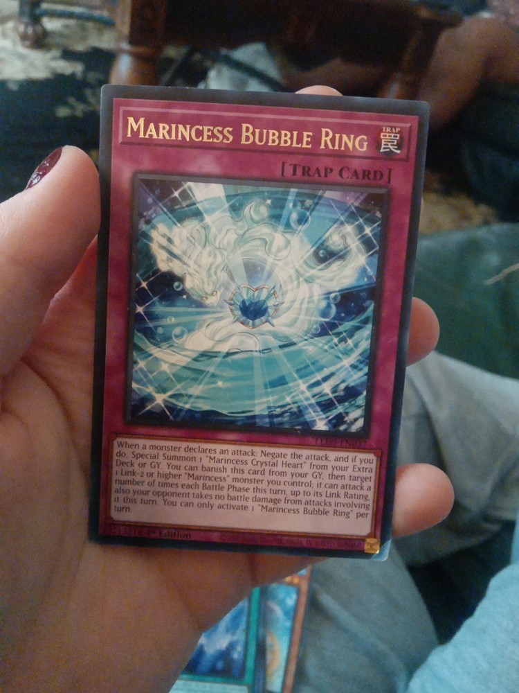 This Marincess Bubble Ring 1st Edition Yu-Gi-Oh card is a rare and sought-after collectible from the Legendary Duelists: Duels from the Deep set. This holo card features the character Crystal and is in near mint or better condition. With its rarity and unique design, this card is a valuable addition to any Yu-Gi-Oh card collection.