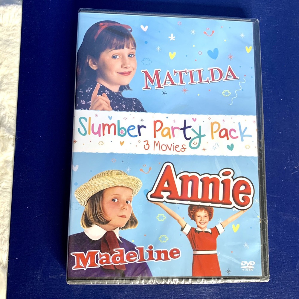Matilda and Annie and Madeline Triple Feature DVD 2017 3-Film 2-Disc Set. NEW & FACTORY SEALED Details Genre Kids & Family Format AC-3, DTS Surround Sound, Full Screen, Subtitled, Widescreen, Dubbed, NTSC Contributor ANNIE (1982) / MADELINE / MATILDA (1996) Language English Runtime 5 hours and 14 minutes