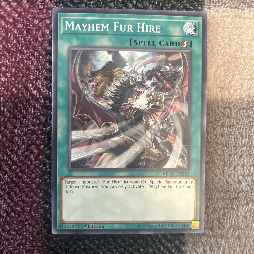 | Card Text | Target 1 monster "Fur Hire" in your GY; Special Summon it in Defense Position. You can only activate 1 "Mayhem Fur Hire" per turn. |