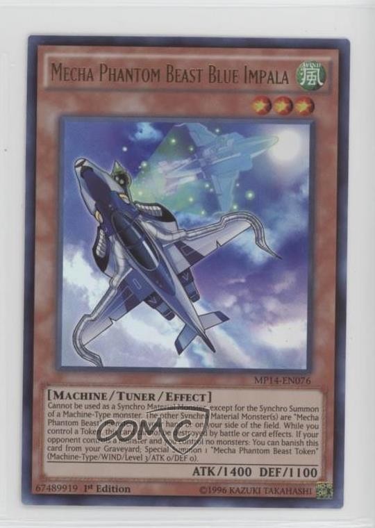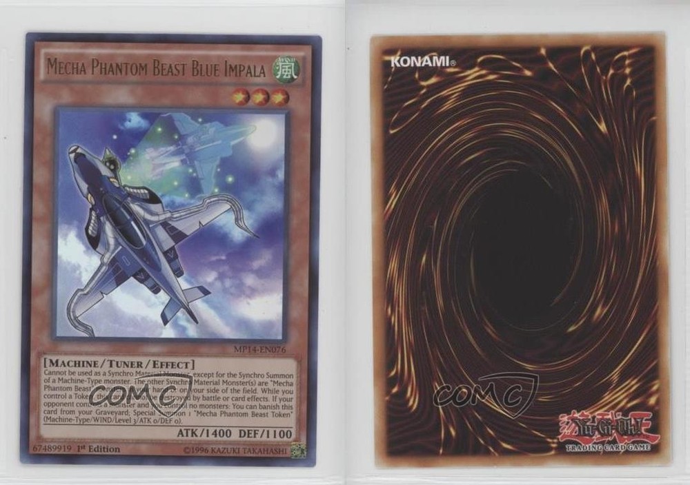 2014 Yu-Gi-Oh! Mega-Tins Mega Pack - [Base] - 1st Edition #MP14-EN076 Mecha Phantom Beast Blue Impala COMC Item: 172308314 - YuGiOh Card Search for more: 2014 Yu-Gi-Oh! Mega-Tins Mega Pack Search for more: 2014 Yu-Gi-Oh! Mega-Tins Mega Pack - [Base] - 1st Edition View all of our Listings Auctions Buy It Now About Us Located in the beautiful Pacific Northwest, COMC (Check Out My Cards) is the world's largest consignment service for trading card singles. More than 10,000 people have used our consignment service to list over 50 million trading cards. Find out how we can help you consign your items on eBay by contacting us through eBay messaging. COMC -- "The Safe & Easy Way to Buy & Sell" Raw Condition for Modern Cards Unless otherwise noted, raw modern cards are listed in Near Mint-Mint condition or better. A NM-MT card appears to be Mint at first glance, but upon closer inspection, may exhibit some of the following: minor print defects (e.g. roller marks, print line, dimple), minor scratches, slight edge wear, and slight corner wear. Centering is clearly visible in the images provided and does not factor into our condition assessment. Raw Condition for Vintage Cards Unless otherwise noted, raw vintage cards are listed in Excellent condition or better. An EX card may exhibit some of the following: minor rounding of corners, surface wear, print defects, light scratches, and slight edge wear/chipping. Centering is clearly visible in the images provided and does not factor into our condition assessment. Domestic Shipping Combined shipping for multiple items is available. To receive combined shipping, please ensure all desired items are in your eBay shopping cart before proceeding to checkout. eBay limits orders to 40 items per order. We automatically combine multiple orders placed on the same day. If you place multiple orders on the same day, please contact us to request a refund of applicable shipping costs. Signature confirmation may be required on invoices over $400. All cards are protected and shipped securely. International Shipping COMC offers eBay's International Shipping (EIS) for international orders under $2,500* (see country exceptions below). All duties and import fees are paid at checkout; in the rare event that there are additional import fees upon delivery, these are borne by the buyer. EIS packages route through a shipping hub in Erlanger, KY before shipping to their final destination. Please note that EIS does not allow for combined shipments. The shipping rates are determined by eBay and cannot be adjusted. *Maximum sale price exceptions: Colombia, Kuwait ($2,000); Taiwan ($1,539); Chile, Costa Rica, Guatemala, Honduras, Trinidad and Tobago ($1,000); Antigua and Barbuda, Aruba, Belize, Dominica, Grenada, Philippines, Saint Kitts and Nevis, Saint Lucia, Montserrat, Turks and Caicos Islands ($500); Dominican Republic, El Salvador ($200). Please request a shipping quote through eBay messaging for orders that exceed the maximum sale price supported by eBay's International Shipping. You will be responsible for all duties and import fees for international orders shipped outside the EIS. All cards are protected and shipped securely. Payment COMC does not accept offers on our cards through our eBay storefront. COMC utilizes eBay’s managed payments system. If you are experiencing difficulties making a payment, please contact eBay for assistance. Return Policy Returns are only accepted on the rare occasion the item is not as described. If you are making a return, please initiate the return process through eBay so a mailing label can be provided for you. Prior to listing, our expert team carefully assessed this item to represent it accurately. Please review the description and high-definition images prior to purchasing to ensure this item meets your satisfaction. We welcome you to contact us if you have further questions about this item. Trust and Integrity COMC carefully assesses each item consigned to us to prevent fraudulent items from entering the marketplace. If you believe an item offered on COMC may be fraudulent, please contact us with details so we can investigate the issue. Items we determine are outside our supported items policy may be removed. Last Modified: 6/3/2025 5:17:38 AM PDT