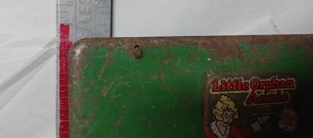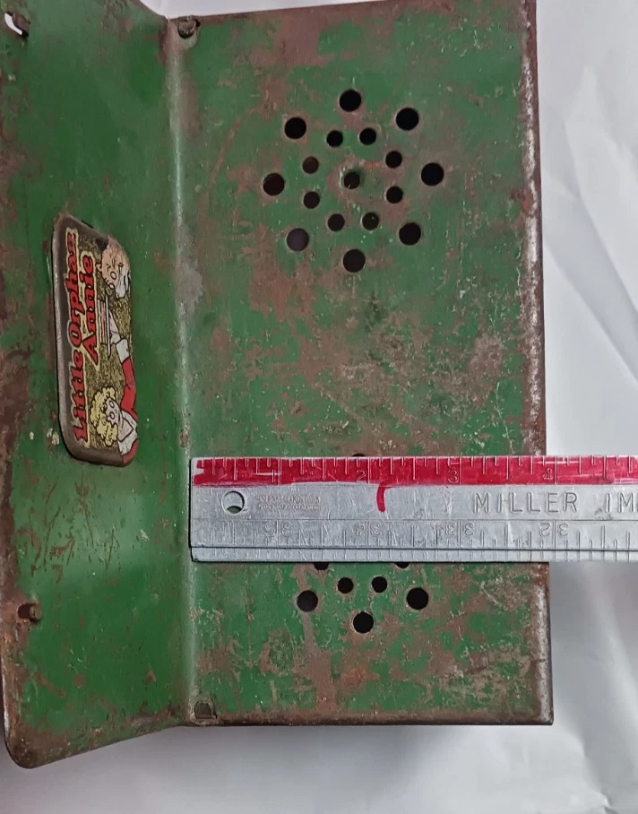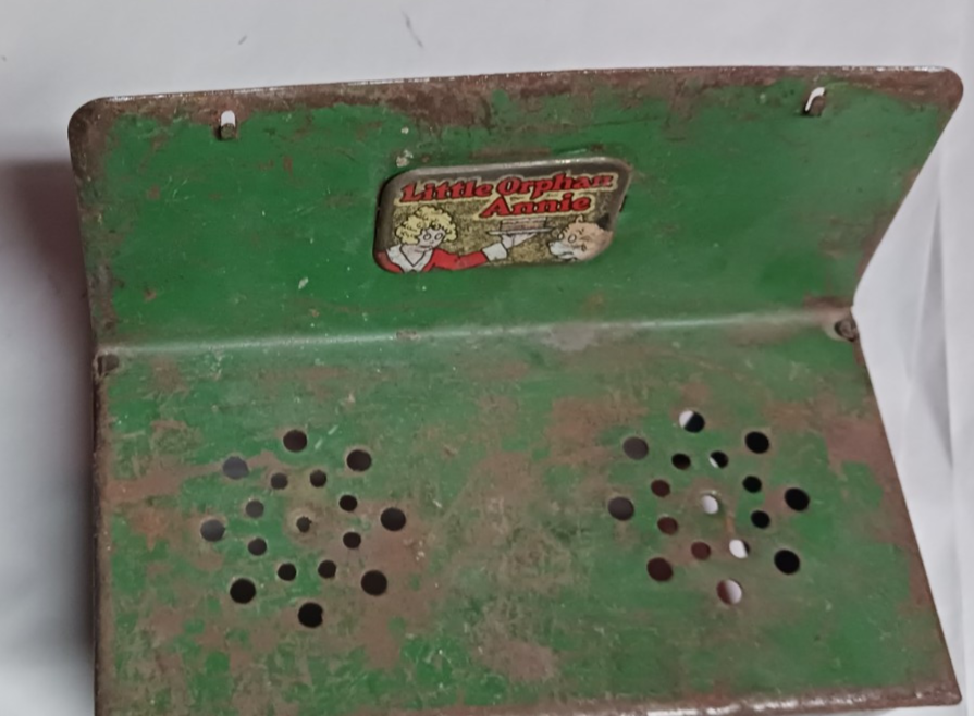 Metal Stove Vintage Little Orphan Annie Toy BLUE & GREEN 8" X 7" X 4". USED CONDITION SEE ALL PHOTOS FOR DESCRIPTION. SELLING "AS IS"...