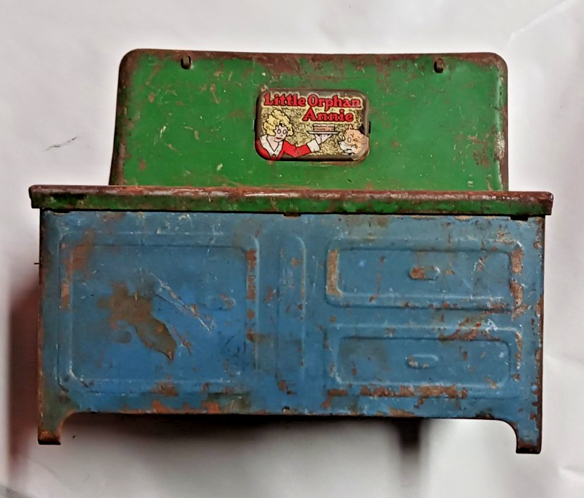 Metal Stove Vintage Little Orphan Annie Toy BLUE & GREEN 8" X 7" X 4". USED CONDITION SEE ALL PHOTOS FOR DESCRIPTION. SELLING "AS IS"