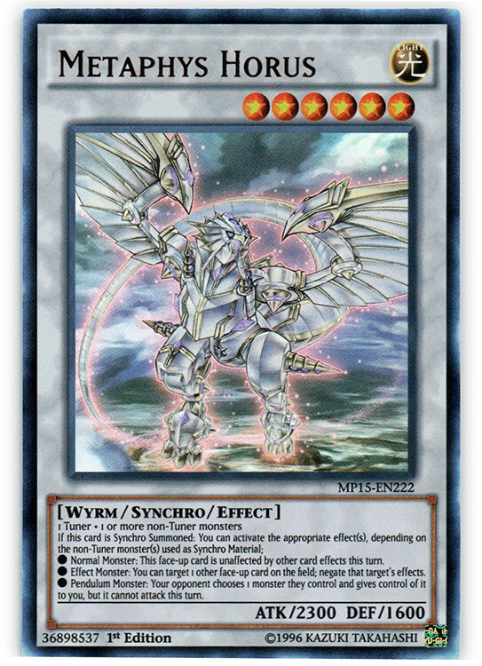 Please, carefully read the following: Image shown is a stock photo and does not reflect the actual card you will be receiving. Please refer to the condition guide below, the title and item description for what you will be receiving. Please also be aware that due to plastic shortages, orders may not always come in a plastic toploader but will always be protected as much as possible to prevent damage. You will receive 1x Metaphys Horus - MP15-EN222 - Ultra Rare - 1st Edition - Condition: Lightly Played Please refer to the Title and Item Description above for the item being purchased. Delivery delays: Deliveries may not always fall within the estimated delivery dates when shipping outside of Canada and USA. Many factors may contribute to delays in delivering the package such as weather and customs. Please note that delivery to international locations may take up to 8 weeks to arrive . We always ship out orders within 1 business day and after dropping off with the post office, delivery times are out of our control. Feedback: We will always leave positive feedback for you and we ask if you can do the same for us. If there is any reason why the transaction was not up to your expectations, please message us before leaving feedback so we can address the issue. Combined shipping: To receive a combined shipping quote, please make sure that you commit to purchasing on ebay.ca . This allows us to send you a combined shipping invoice before payment. Shipping within the USA (6-10 Business days): FREE! Shipping within Canada (3-8 Business days): FREE! Shipping and handling delay: We aim to ship all orders within 1 business day. We do not ship on weekends and holidays. Condition Guide: We do not sell any cards that are in MINT condition, the best condition that we offer is near mint. Near Mint (NM) - Cards in Near Mint condition show minimal to no wear from shuffling, play or handling and can have a nearly unmarked surface, crisp corners and unblemished edges outside of a few minimal flaws. A Near Mint card may have a tiny edge nick or a tiny scratch or two, but overall look nearly unplayed with no major defects or flaws. Lightly Played (LP) - Cards in Lightly Played condition may have minor border or corner wear or even just slight scuffs or scratches. There are no major defects such as water damage, bends or issues with the structural integrity of the card. Noticeable imperfections are okay, but none should be too severe or at too high a volume. Moderately Played (MP) - Cards in Moderately Played condition exhibit condition issues visible at a casual glance. Cards in Moderately Played condition can have border wear, corner wear, scratching or scuffing, creases or whitening, minor dirt buildup or any combination of mild examples of these marks. A Moderately Played card may have some form of a more major marking, such as spot water damage or creasing that doesnʼt affect card integrity, but not in combination with other issues such as scratches, scuffs or border/edge wear and not impacting a large area of the card. Heavily Played (HP) - Cards in Heavily Played condition show a severe amount of wear. Heavily Played condition can include cards that have major creasing, major whitening, major border wear or any combination of those flaws. (These flaws cannot prevent the card from being tournament playable when sleeved.) Damaged - Cards in Damaged condition can exhibit a tear, bend or crease that may make the card illegal for tournament play, even in a sleeve. Cards in Damaged condition may have extreme border wear, extreme corner wear, heavy scratching or scuffing, folds, creases or tears or other damages that impacts the structural integrity of the card.
