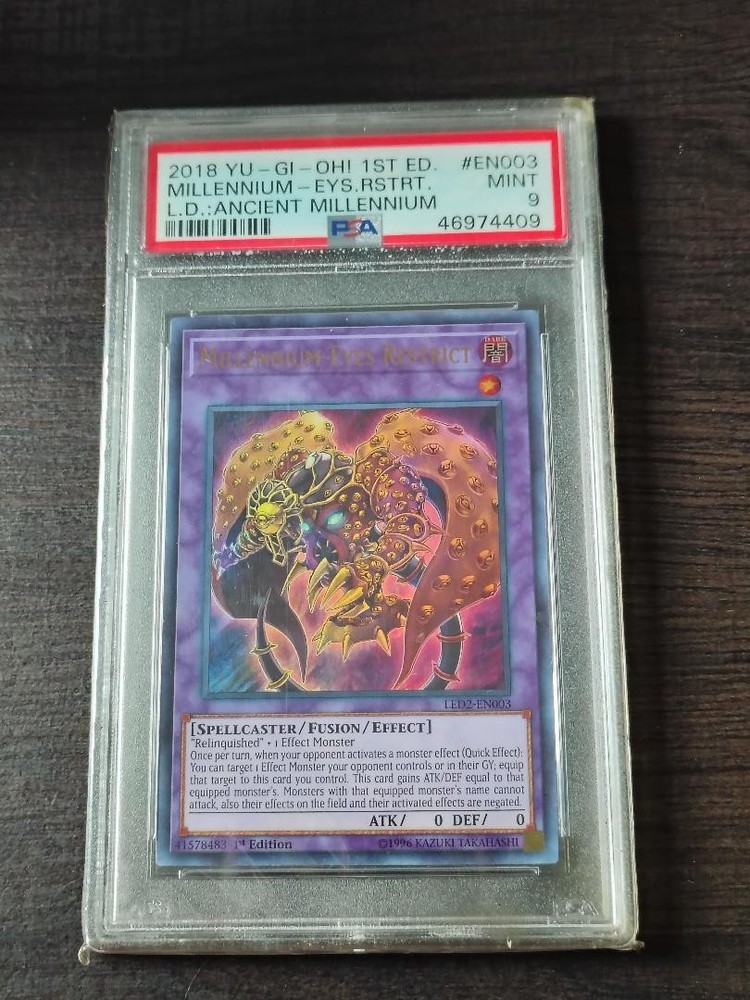 Elevate your Yu-Gi-Oh! TCG collection with the legendary Millennium-Eyes Restrict card from the Legendary Duelists: Ancient Millennium set. This ultra-rare card, numbered LED2-EN003, features the iconic Dark attribute and is a must-have for Spellcaster enthusiasts. Its first edition status adds a layer of rarity and desirability, making it a standout addition to any deck or display.Crafted by Konami, the card boasts an impressive record of 0 attack/power and 0 defense/toughness, illustrating its unique Effect and Fusion capabilities. The English language card is suitable for players and collectors alike, providing both gameplay potential and a collectible treasure within the Yu-Gi-Oh! universe.