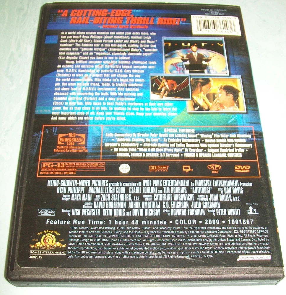 Cases have varying shelf/handling wear. Discs are in good condition or better. Some are new! New and Blu-rays will be identified in the titles and photos. We have lots of other items. They can all be found in our store Lucky's Lookout. All of our listings allow multiple item purchase discounts and combined shipping if purchased in the same checkout. If for some reason it does not work correctly, you may contact us before completing checkout for us to correct the problem or we will refund any amounts needed to apply the discount and combined shipping savings when we ship your order. For more listings like this one go to: Modern 1975+ Classic DVD & Blu-rays # thru Al eBay item number: 126502753106 Modern 1975+ Classic DVD & Blu-rays Bi thru C eBay item number: 126502753106 Modern 1975+ Classic DVD & Blu-rays D thru H eBay item number: 126502820797 Modern 1975+ Classic DVD & Blu-rays I thru Q eBay item number: 126502860046 Modern 1975+ Classic DVD & Blu-rays R thru Z eBay item number: 116197224867 Classic Movie and /TV DVDs and Blu-rays D thru H eBay item number: 126187976827 Classic Movie and /TV DVDs and Blu-rays I thru Q eBay item number: 126008590283 Classic Movie and /TV DVDs and Blu-rays R thru Z eBay item number: 126188001509 Musicals and Music Themed DVDs/Blu-rays eBay item number: 115463939446 Concert and Music DVDs eBay item number: 115456117557 BBC & British Shows DVDs & Blu-rays eBay item number: 125692175184 Horror DVDs and Blu-rays 1 to D eBay item number: 114916571492 Horror DVDs and Blu-rays E to J eBay item number : 125877696532 Horror DVDs and Blu-rays K to R eBay item number : 125877711109 Horror DVDs and Blu-rays S to Z eBay item number: 125214044954 Brand New Horror DVDs and Blu-rays eBay item number: 125047318793 Martial Arts Themed DVDs/Blu-rays eBay item number: 125498714848 Various Brand New DVDs eBay item number: 114918879512 Various Blu-rays eBay item number: 124831044366 Religious Themed DVDs # thru I eBay item number: 125683035440 Religious Themed DVDs J thru Z eBay item number: 126061310732 Disney DVDs #0 through L eBay item number: 114927785955 Disney DVDs M through Z eBay item number: 125546398679 Disney Blu-rays eBay item number: 115552095810 Other Childrens and Family DV Ds and Blu-rays # - L eBay item number: 115354076450 Other Childrens and Family DV Ds and Blu-rays M - Z eBay item number: 125986608525 New Unopene d Other Childrens and Family DVDs and Blu-rays eBay item number: 115504107547 Sports Films/Movies DVDs/Blu-rays # - K eBay item number: 125445399509 Sports Films/Movies DVDs/Blu-rays L - Z eBay item number: 115868641834 Western DVDs and Blu-rays # - K eBay item number: 115086791119 Western DVDs and Blu-rays L - Z eBay item number: 125965088769 Military/War/C ombat DVDs and Blu-rays # - H eBay item number: 115095247333 Military/War/C ombat DVDs and Blu-rays I - Z eBay item number: 115843793496 Sci-Fi DVDs & Blu-rays # - J eBay item number: 124849948156 Sci-Fi DVDs & Blu-rays K - Z eBay item num ber: 125936967579 NEW Sci-Fi DVDs & Blu-rays eBay item number: 125422436461 Super Hero DVDs & Blu-rays eBay item number: 125245496714 Health and Fitness DVDs eBay item number: 115040001181 Christmas DVDs and Blu-rays eBay item number: 115571149554 Christmas/Holiday CDs eBay item number: 125014251018 We do not accept returns, so please read item descriptions carefully and ask any questions before buying. If there are any problems with items purchased, please contact us directly and we will do our best to resolve the problems. All shipping charges include tracking/delivery confirmation. Thank you for shopping Lucky's Lookout.