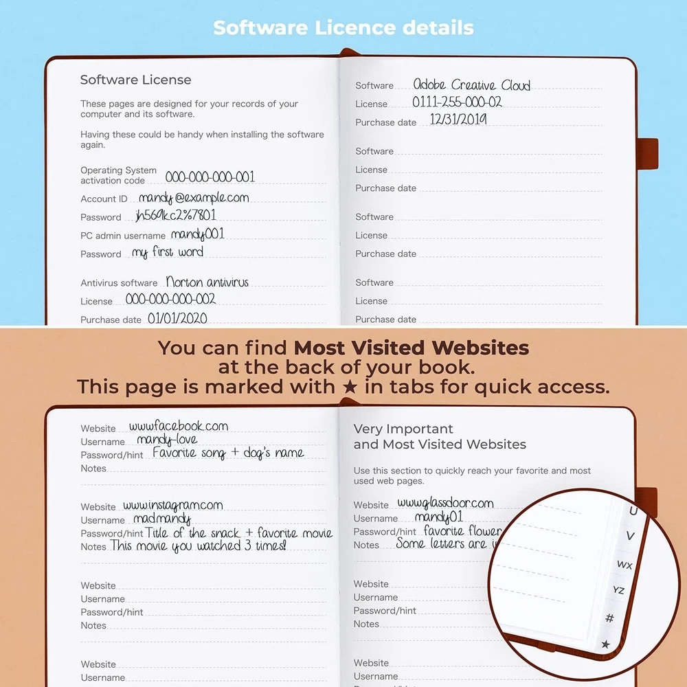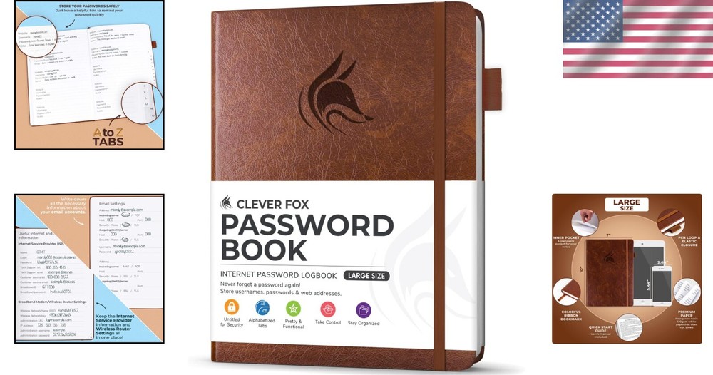 Modern Password Keeper Journal - Premium Password Logbook with Tabbed Sections ‹ › ‹ › ‹ › ‹ › ‹ › ‹ › ‹ › ‹ › Modern Password Keeper Journal -Premium Password Logbook with Tabbed Sections -Never Forget a Password Again! Features: Allows you to create secure passwords and keep them safe and organized Alphabetical A-Z tabs for easy password retrieval Sections for important passwords, wireless & email settings, software license information, and additional notes Designed to be anonymous with no obvious title on the cover for added security Large size (7x10 inches) with eco-leather hardcover, elastic band, pen loop, bookmark, pocket for notes, and thick 120gsm paper 60-day money-back guarantee for your satisfaction Benefits: Effortlessly organize and store all your passwords in one secure place Quickly locate any password with the alphabetical tab system Enhanced security by allowing hints instead of actual passwords High-quality materials and thoughtful design for a premium user experience Peace of mind with the 60-day money-back guarantee Why choose our Password Keeper Journal? Are you tired of struggling to remember all your passwords and login details? The Modern Password Keeper Journal by is here to make your life easier and more secure. With its smart organization system, elegant design, and premium quality materials, this password logbook ensures that you never forget a password again. Say goodbye to the hassle of password management and hello to a more efficient and secure way of keeping track of your sensitive information. Don't compromise on your online security and organization - get your hands on the Modern Password Keeper Journal today! Shipping Free & Fast Shipping - We offer free shipping to most of the USA with a normal delivery time of 3-7 days. However, due to the current situation, additional delivery time (up to 3 weeks) may be required for some items. Alternative Carriers - We may use alternative carriers (e.g. USPS, FedEx, UPS, etc.) to ensure your package arrives safely and on time. Due to the use of multiple carriers, we are unable to provide a tracking number automatically. Handling Time - Orders are processed and shipped within 1-2 business days of receiving cleared payment. Shipping Restrictions - Shipping to Alaska, Hawaii, Puerto Rico, Guam, and other US territories may incur shipping charges or delivery restrictions. Please contact us before ordering, or your order can be refunded/cancelled. State Restrictions - There may be restrictions based on your state of purchase. For example, certain items may not be shipped to California due to state regulations. Contact for Tracking Updates - If you require tracking updates or have any concerns about the delivery of your order, please feel free to contact us, and we will be happy to assist you. Return 30-Day Hassle-Free Returns - We want you to be completely satisfied with your purchase. If you are not, you can return the item within 30 days of receiving it for a full refund or exchange. Easy Return Process - To start a return, simply contact us and we will provide you with a prepaid return shipping label and detailed instructions. Restocking Fee - There are no restocking fees for returns. However, the buyer is responsible for return shipping costs if the return is not due to a seller's error. Refund Processing Time - Refunds will be processed within 5 business days of receiving the returned item in its original condition. Payment We accept all major credit cards, PayPal, and Apple Pay for your convenience. Your payment information is secure and encrypted to ensure a safe and seamless transaction. Please complete your payment within 3 days of purchase to avoid any delays in shipping. Feedback Your feedback is extremely important to us. We strive to provide the best products and customer service possible. If you are satisfied with your purchase, please take a moment to leave us a positive review. If you have any concerns or issues with your order, please contact us before leaving negative feedback. We are committed to resolving any problems and ensuring your satisfaction. Contact Us If you have any questions or concerns, please feel free to reach out to our customer support team. You can contact us through the eBay messaging system. We are available Monday to Friday, 9:00 am to 5:00 pm EST, and we will do our best to respond to your inquiry within 24 hours. Thank you for supporting our small family business! Number of Pages: Password Book with Alphabetical Tabs Unit Quantity: 1 Author: Unknown Language: Password Book with Alphabetical Tabs Topic: Organization,Password Management,Data Security Genre: Organization Tools,Planners Features: Faux Leather Bound,Illustrated,Large Print,Bookmark,Pocket for Notes,Alphabetical Tabs,Wireless & Email Sections,Additional Notes Section Edition: Password Book with Alphabetical Tabs Signed By: Password Book with Alphabetical Tabs Illustrator: Unknown Literary Movement: Modernism Book Title: Password Book with Alphabetical Tabs Format: Notebook Publisher: Clever Fox Book Series: Password Book with Alphabetical Tabs Original Language: Password Book with Alphabetical Tabs Type: Password Organizer Era: Modern Item Height: Password Book with Alphabetical Tabs Item Length: Password Book with Alphabetical Tabs Item Weight: 1.32 pounds Item Width: Password Book with Alphabetical Tabs